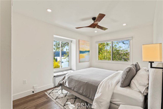 Just Listed Lakefront Opportunity of the Season! This LEVEL entry lake home is completely remodeled head to toe with Beautiful lake views straight to village. Enjoy the firework show right from your own deck. The photos do not do the views justice and will only get broader as the tress drop leaves. This property is completely set up for turn key occupancy with designer Crate and Barrel furnishings and accents intact. Short term rentals could be an amazing income source right from the start. All the rooms have a view! Light and bright with a great floor plan. There are three bedrooms up with an ensuite primary and an additional guest bath at lower level there is another ensuite bedroom with a spaciously sized family/game room and big screen TV. New trex decking on both levels with new patio furnishings, all new paint, flooring, cabinetry, and new systems! This truly is your opportunity for a turnkey experience! The half double dock is available for additional in deep water and is accessed on easy to walk concrete staircase down to shoreline.