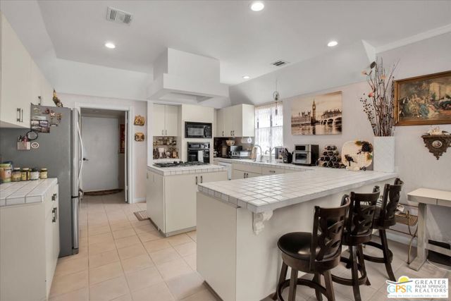 Welcome to 9241 Clubhouse Blvd, a spacious 3-bedroom, 2-bath single-family home offering nearly 2,000 square feet of bright and comfortable living in the sought-after Mission Lakes Country Club community in Desert Hot Springs. This property combines relaxed desert living with incredible amenities including unlimited golf for two owners on title, all covered by low monthly HOA dues. From the moment you arrive, the hand-laid paver courtyard creates a warm and inviting entry, ideal for enjoying a quiet morning coffee or an evening chat as the desert sky glows. Inside, the home welcomes you with soaring ceilings, large windows, and a thoughtfully updated gas fireplace with Tiffany glass accents, setting a tone of charm and comfort throughout. The open-concept kitchen features a functional island and breakfast bar, seamlessly connecting to the dining and living areas perfect for entertaining or relaxed daily living. The second and third bedrooms offer a unique rental potential or guest flexibility, thanks to a set of French doors that open directly to the front courtyard, providing a semi-private entrance for guests, long-term tenants, or visiting friends. Each room is generously sized, and the three-car garage provides plenty of space for vehicles, storage, or a golf cart. The backyard offers an opportunity to customize your own outdoor retreat a blank canvas for drought-tolerant landscaping, a cozy fire pit, or alfresco dining space. Located just a short walk from the clubhouse, this home offers convenient access to all the Mission Lakes amenities, including the Ted Robinson designed 18-hole golf course, resort-style pool and spa, tennis courts, fitness center, and on-site restaurant and lounge. The community also provides roving security patrols both day and night, adding peace of mind for residents. 9241 Clubhouse Blvd is a standout opportunity to personalize a spacious home in a well-established, amenity-rich community. With its flexible layout, value-driven pricing, and enviable access to golf and recreation, this property is ready for your vision. Experience the easygoing desert lifestyle that makes Mission Lakes Country Club one of Desert Hot Springs' most appealing places to call home.