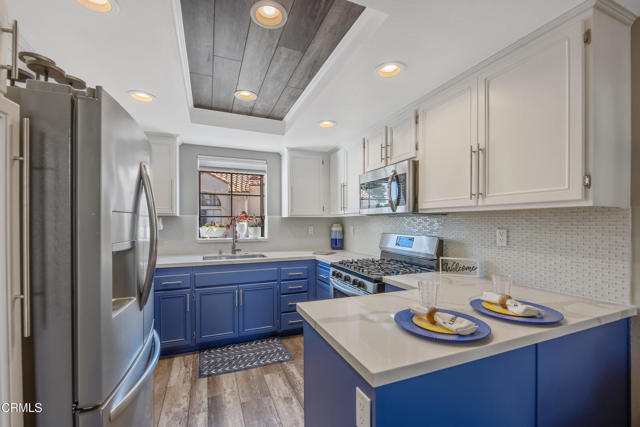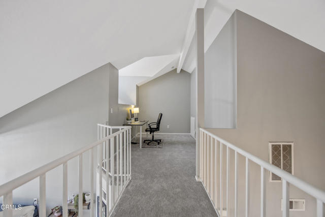 Welcome home to this move-in ready two bedroom (with loft/flex space) and two full bathroom condo in the Princessa Estates. This light-filled home features a bright and open floor plan with soaring cathedral ceilings and a versatile loft, perfect for a home office, guest space, or 3rd bedroom, the possibilities are endless!The beautifully updated kitchen features new countertops, backsplash, recessed lighting, fresh paint and stainless steel appliances. Enjoy the warmth of an updated fireplace, complemented by new flooring, base molding, and modern lighting fixtures throughout. Both bathrooms have been thoughtfully renovated with new vanities, flooring, and toilets, adding a fresh, contemporary touch. The guest bedroom includes new closet doors, while the primary suite features vaulted ceilings for a spacious, airy feel! Step outside to multiple greenbelts as well as enjoy community amenities and 2 sparkling pools!Unit has a tandem two car garage with easy access to your unit. Featuring a new garage door. And washer & dryer as well as all appliances are included!Located in a highly convenient, commuter-friendly spot, less than 1/4 mile from the 14 Freeway, and easy access to local shops and restaurants.This home truly combines modern upgrades, thoughtful design, and everyday convenience--making it the perfect place to call HOME!