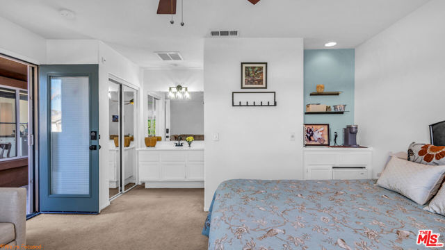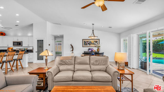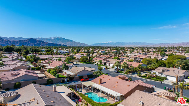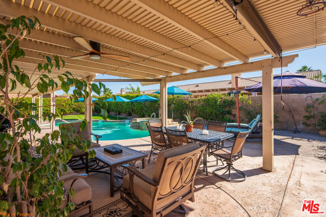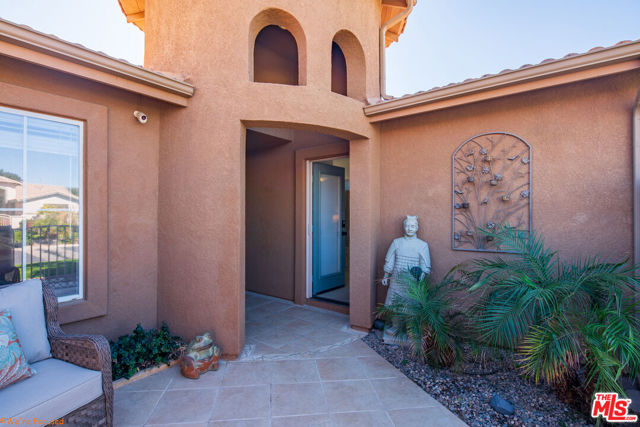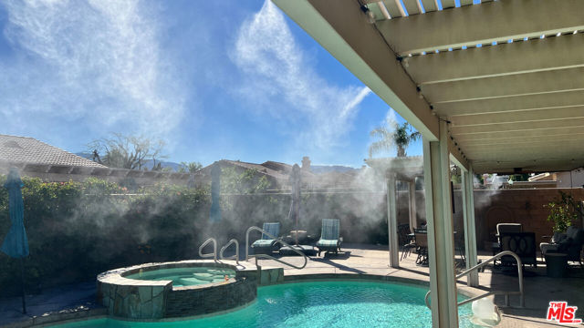 Welcome to this exceptional home in the prestigious Las Brisas II community, where comfort, privacy, and thoughtful design come together to create the perfect desert retreat. Whether you're looking for a primary residence, a second home, or a seasonal getaway, this property offers a lifestyle of relaxation and convenience. The attached casita is a standout feature, spacious and private, making it ideal for visiting family and friends. With its own bathroom and shower, guests can enjoy their stay with complete independence, coming and going as they please. Step into the serene backyard oasis, where a saltwater pool and spa invite relaxation. A shallow lounge area in the pool allows for cooling off in style, while the commercial-grade misting system keeps the covered patio refreshingly comfortable during the summer months. Whether basking in the sunshine or soaking in the spa beneath a starlit desert sky, this space is designed for pure enjoyment. The backyard is a haven for hummingbirds, and the fragrant plumeria adds to the tranquil ambiance. Occasionally, a roadrunner can be spotted in the front yard, reinforcing the home's connection to the natural desert landscape. The mountain views and spectacular pink and purple sunsets create a breathtaking backdrop, while the clear night sky is filled with stars. Inside, the great room is warm and inviting, centered around a cozy fireplace. The high ceilings throughout the home enhance the spacious feel, while the multi-zone air conditioning system ensures year-round comfort. Screen doors allow fresh morning air to flow through, and the home's insulation keeps it cool and energy-efficient. The primary suite is a private retreat, offering direct access to the pool and patio. It features an expansive bedroom, a spa-like bathroom, and dual walk-in closets. A second bedroom also opens to the backyard and pool area, with easy access to a nearby bathroom, making it ideal for guests. The third bedroom is versatile and perfect as an office, den, or additional sleeping space. The kitchen is the heart of the home, with a large island, ample storage, and a spacious pantry perfect for home chefs and entertainers alike. A dedicated laundry room provides everyday convenience, complete with a newer washer and dryer and storage space for organization. The garage is designed for functionality, featuring built-in storage cabinets, attic storage access, a workbench for projects, and an EV charging outlet. Las Brisas II is a well-managed, gated community that offers both security and a peaceful atmosphere. Neighbors are friendly yet respect privacy. Directly across from the home is a private parklet, exclusively for residents and their furry friends, providing a perfect space for walking, relaxing, or enjoying time outdoors. This home is perfectly situated to enjoy the best of both West Indio and La Quinta, offering the convenience of nearby shopping, dining, and outdoor activities. Just outside the gates, you'll find everything you need: quaint cafes, local markets, and the best of La Quinta, including Old Town's vibrant shops, farmers market, and the renowned La Quinta Arts Festival. The home is also just minutes from the Polo Grounds, where world-class festivals are held. Whether a snowbird, full-time resident, or searching for the perfect second home, this property and its surroundings will enrich any lifestyle. With its thoughtful design, ideal location, and resort-style amenities, this is truly one of the best homes in Las Brisas II.