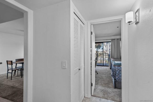 End-unit 1BR/1BA condo with canyon views! Features updated kitchen with stainless steel appliances, updated bath, in-unit washer/dryer, central heat & air, and private patio with storage. Spacious bedroom with walk-in closet. Secure underground parking. Quiet community with lush landscaping and picnic areas. Convenient to SDSU, shopping, dining, and freeways. Perfect for VA buyers or students — seller is motivated and ready to move!