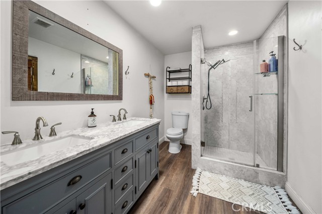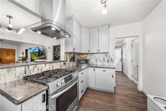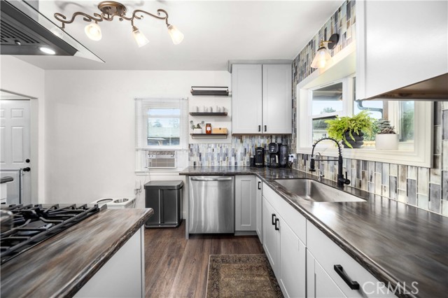 Updated cottage in the historic downtown area of Tehachapi. Full of charm and sophistication! Renovated interior and exterior! This home has a split wing floor plan with a spacious family room/dining room combination, laminate flooring throughout, newer windows and newer water heater. The kitchen has custom cabinets, farm house sink, stone counter tops, and newer stainless appliances. The primary bedroom has an electric fireplace and an adjoining bathroom with updated cabinets, stone counter and a large shower. The secondary bedrooms share an updated full bathroom. The exterior has beautiful new front fencing and was recently painted. The rear yard has a gazebo and a workshop and is fenced and cross fenced. Walking distance to downtown and an easy commute to the 58 freeway too! Don't wait too long to see this charming house that's conveniently located in the heart of downtown Tehachapi!