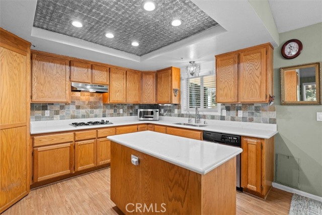 The large open kitchen is both elegant and functional, featuring quartz countertops, high-end stainless steel appliances and a large island for the chef or for gathering.