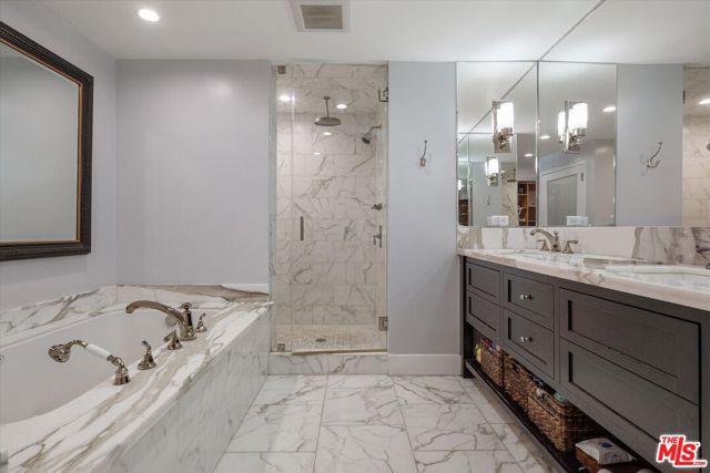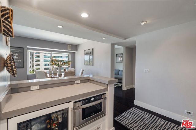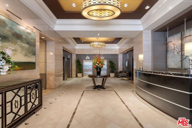 Welcome to The Dorchester on the Wilshire Corridor, one of the most prestigious full-service buildings on the Corridor. This stunning northeast corner residence on the 11th floor offers 3 bedrooms, 2.5 baths, and panoramic city and mountain views. Spanning over 1,800 square feet, the open and airy layout is enhanced by natural light, bamboo floors, and floor-to-ceiling windows framing the skyline. The open-concept kitchen is beautifully designed with premium stainless-steel appliances, including an oven, stovetop, microwave, built-in coffee machine, panel-ready refrigerator, and wine cooler. Expansive stone countertops flow seamlessly into the dining and living areas, ideal for entertaining or relaxing while taking in the views. The primary suite features a large walk-in closet and a luxurious marble bathroom with heated floors, a soaking tub, dual vanities, and a dual-head shower including a rain shower feature. The second bedroom suite includes its own en-suite bath with a shower-over-tub, while the third bedroom, conveniently located near the powder room, can serve as a spacious office or guest bedroom, each room offering its own unique city view. A dedicated laundry room with a side-by-side washer/dryer, utility sink, and folding area completes the thoughtful floor plan. The Dorchester is a full-service luxury building offering 24/7 concierge, security, and valet services with available EV charging, plus a rooftop pool and barbecue area with panoramic views, a fitness center, an infrared sauna, and a conference room. Ideally situated in Westwood near UCLA, just minutes from Beverly Hills and Century City, residents enjoy easy access to world-class shopping, dining, and entertainment.