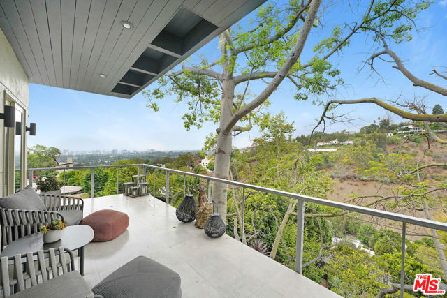 Set in a tranquil Beverly Hills PO location, this contemporary architectural masterpiece combines privacy, comfort, and stunning views of the ocean, Catalina Island, sparkling city lights, and the Getty Museum all while remaining easily accessible. Perched just above the city on a coveted street-to-street lot, the home offers seamless indoor-outdoor living with expansive balconies, lush gardens, and space for an infinity-edge pool or private ADU with its own entrance. Walls of glass, skylights, and floor-to-ceiling windows flood the interiors with natural light. The grand living room is perfect for entertaining, while the open-concept chef's kitchen features a 9' x 4' island, Bisazza glass tile backsplash, Cesar stone countertops, and top-tier stainless steel appliances.The luxurious primary suite includes a spa-like bath with steam shower and custom walk-in closet, complemented by three additional en-suite bedrooms, including a private guest suite with separate entrance. Offering prestige, privacy, and unmatched views without being far above the city, this estate delivers the ultimate Beverly Hills lifestyle.