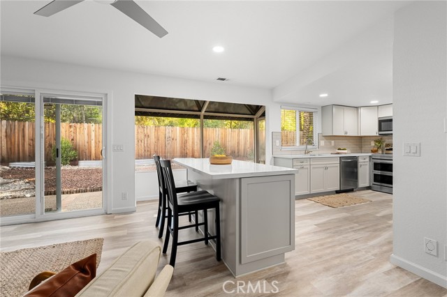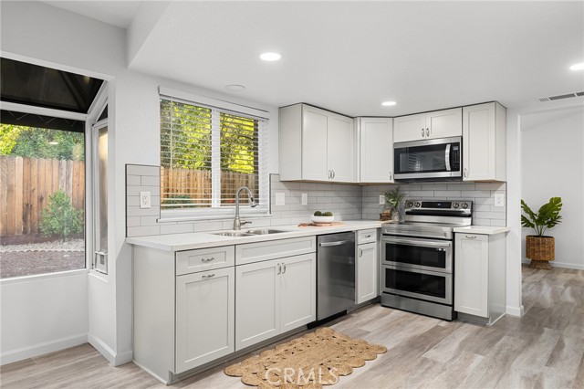 Stunning Remodeled 4 Bedroom, 2.5 Bath Home with OWNED Solar and BONUS Room. Step inside this beautifully remodeled home and experience a bright, open entryway with vaulted ceilings that make a stunning first impression. This spacious property features 4 bedrooms, 2.5 bathrooms, and a versatile bonus room off the garage that can be used as a home gym, office, or playroom. The layout offers both a living room and a family room, providing plenty of space to relax and entertain. The family room features a cozy brick fireplace, while the separate dining room is ideal for gatherings and celebrations. The fully remodeled kitchen is a showstopper with newer cabinetry, updated lighting, newer appliances, a double sink, and a stylish backsplash, making it perfect for cooking and entertaining. The home also features newer LVP flooring, fresh paint, and ceiling fans throughout, creating a warm and inviting atmosphere. Both bathrooms have been tastefully renovated, including luxurious wetroom-style showers. The primary suite is a true retreat with a soaking tub, dual sink vanities, and a walk-in shower. Generous storage is found throughout the home for added convenience. Over $200,000 in upgrades have been invested into this property, bringing modern comfort, functionality, and style to every corner. Energy efficiency is a highlight with owned solar panels, newer windows, a new HVAC system, and a new water heater. Step outside to enjoy the beautifully landscaped front and back yards, a newer redwood fence for privacy, and full gutter protection. Additional upgrades include newer sliding glass doors, updated electrical in the bathrooms, and a spacious two car garage. Every detail has been thoughtfully designed to create a turnkey home that blends modern style with everyday comfort. With its quality updates and inviting spaces, this home is ready for you to move in and enjoy. Don't miss out!