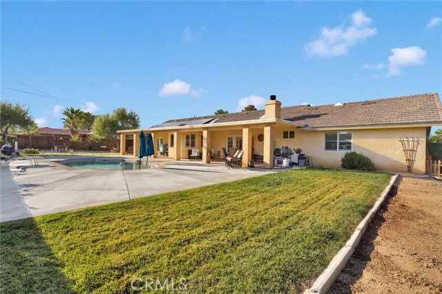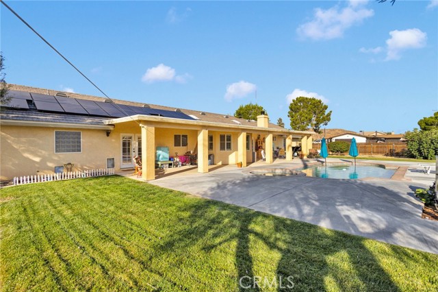 Welcome to your dream SINGLE STORY- POOL and SPA home! Energy efficient and cost effective with OWNED SOLAR! Perfectly situated on a spacious corner lot in a quiet, well-established neighborhood, this beautifully maintained 4-bedroom, 2-bath single-level residence offers the ideal combination of comfort, functionality, and style. As you step inside, you’re welcomed by two generous living areas filled with natural light—providing the perfect spaces for both relaxed family living and effortless entertaining. The open-concept kitchen seamlessly connects to the main living space and dedicated dining room, making everyday meals and special gatherings a joy.The primary suite is a serene retreat, complete with an en-suite bathroom and plenty of closet space. Three additional bedrooms offer flexibility for guest rooms, home offices, or growing families. Step outside and experience your own backyard paradise. A sparkling pool and spa invite you to unwind or entertain under the sun or stars, while the expansive yard provides plenty of room for play, gardening, or even future possibilities. Room for RV and TOYS! This home also features an attached 3 car garage, ample circular drive parking, and the rare convenience of a single-level layout—all on a large lot that offers both privacy and potential.