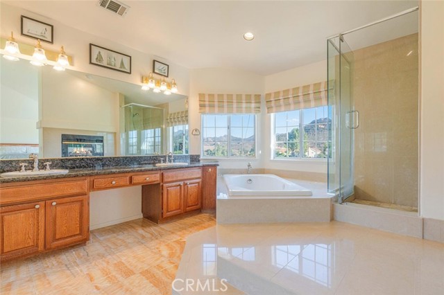 Set on a peaceful cul-de-sac in the desirable Three Springs neighborhood, this VIEW home features 5 bedrooms and 4 bathrooms, offering privacy, elegance, and modern style. The property is just minutes from Three Springs Park, Westlake Lake, the area’s best dining, and within the award-winning Las Virgenes School District. Step through double doors into soaring ceilings, a step-down living room that opens to the dining area, and a dramatic sweeping staircase. The thoughtful floor plan includes two bedrooms and two bathrooms on the main level—one currently used as an office/den and another as an ensuite guest room—offering flexible living options. The spacious family room flows into a breakfast nook and large kitchen with a walk-in pantry, perfect for everyday living and entertaining. Upstairs, you’ll find a bright open loft (which could easily be converted into a sixth bedroom if desired), two additional bedrooms, and an expansive primary suite. The large primary has a double sided fireplace, and captures stunning views of the Santa Monica Mountains. The private backyard offers a covered gazebo, a large deck, fruit trees, low-maintenance landscaping, and incredible views. Seller may consider a lease. Three Springs is an exceptional community with tree-lined streets, a central park, and the peaceful beauty of Westlake Village living.