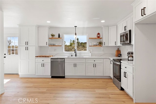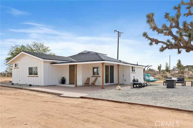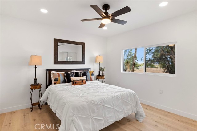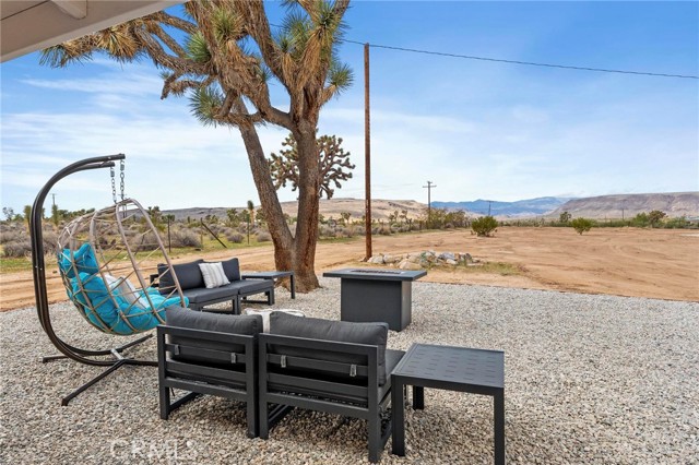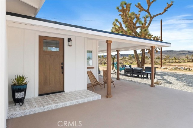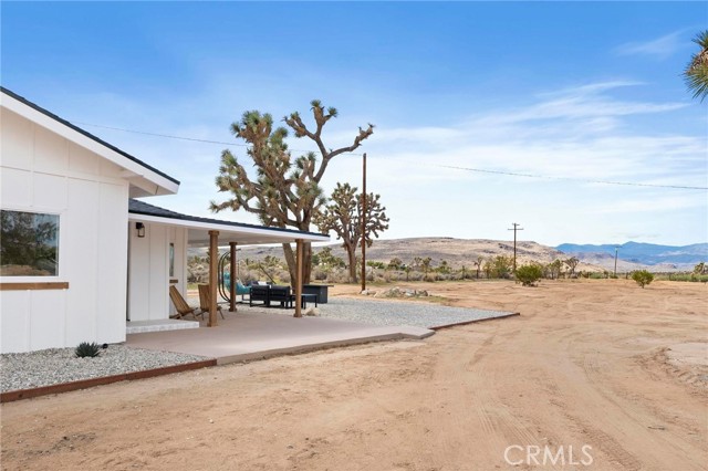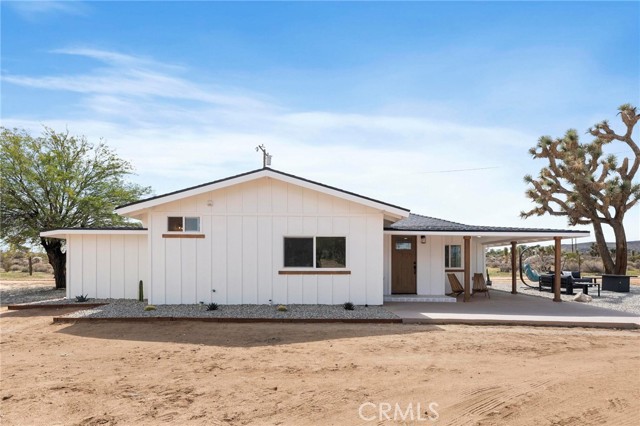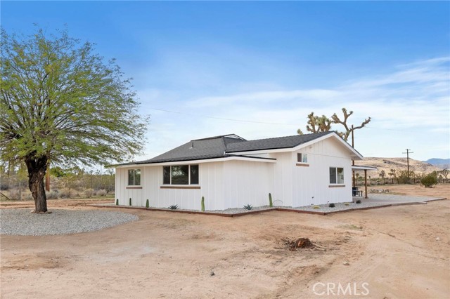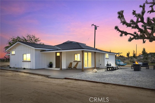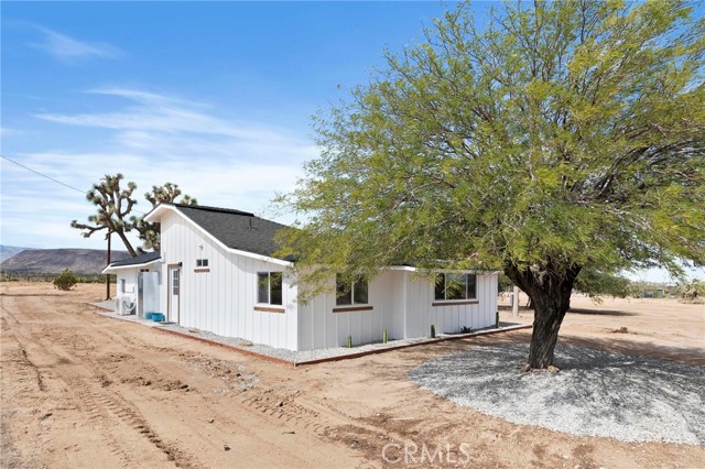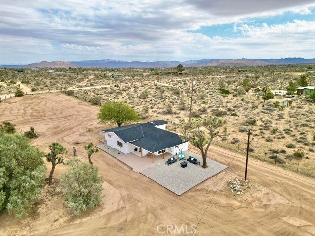 Welcome to 3398 Condalia Ave, a fully remodeled 3 Bed 2 Bath desert oasis on 3.65 acres of pristine, fully fenced land surrounded by beautiful Joshua trees and breathtaking mesa and sunset views. Located in the peaceful New Horizons area, this property offers the perfect blend of modern living and serene desert charm. Inside, every inch has been redone from the ground up — featuring a brand-new kitchen, bathrooms, drywall, electrical, plumbing, HVAC, flooring, and roof. The bright and open layout includes 3 bedrooms and 2 bathrooms totaling approximately 1,458 sq. ft. of turn-key living space. You’ll also find a separate laundry room and a large covered patio perfect for relaxing and taking in the Sand-to-Snow, Black Lava Butte, and Flat Top Mesa views. The property’s huge 6-car garage/workshop, plus two additional storage/workshop units, provide endless space for projects, equipment, or creative pursuits. The graveled garden and open land are ideal for gatherings or future landscaping ideas. A private well sits on the property, while the home is conveniently connected to city water. Zoned for Rural Living (RL), this property allows up to nine animals or horses — making it perfect for those seeking space, freedom, and possibility. With beautiful Joshua Tree National Park just 15 minutes away, Palm Springs 45 minutes, and Twentynine Palms Marine Base 40 minutes, this home offers the best of desert living with easy access to everything. Whether you’re looking for a peaceful full-time home, weekend getaway, or short-term rental investment, this stunning property delivers comfort, privacy, and endless desert beauty.