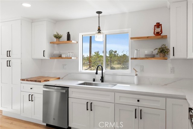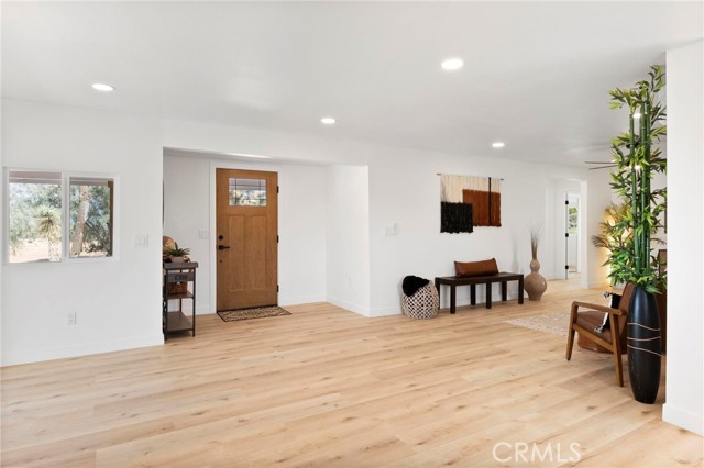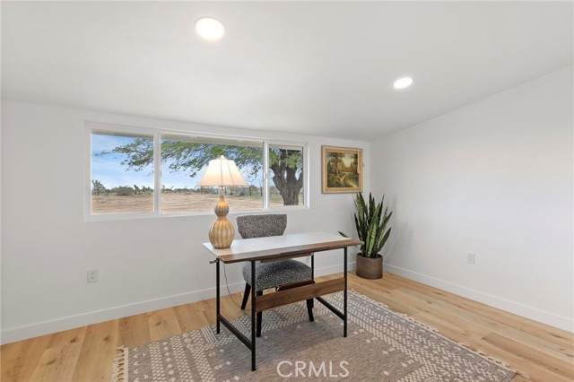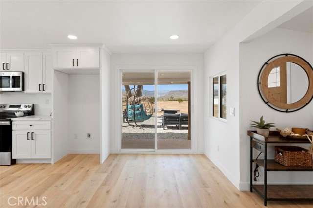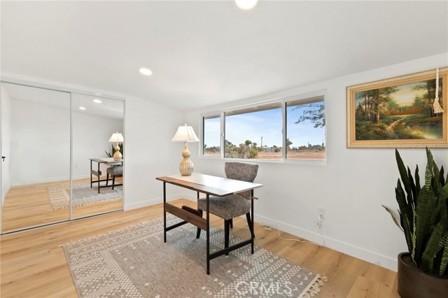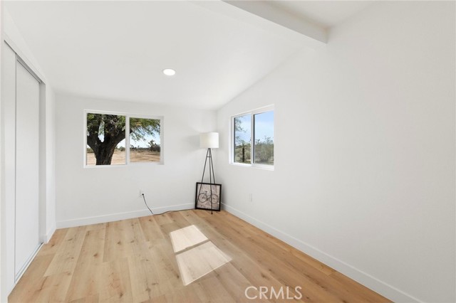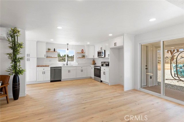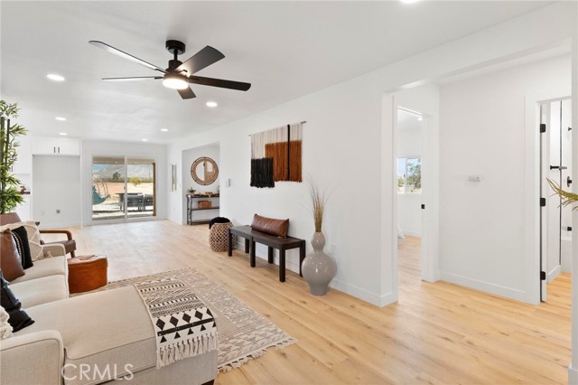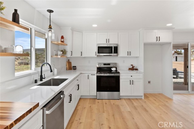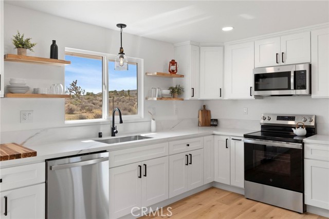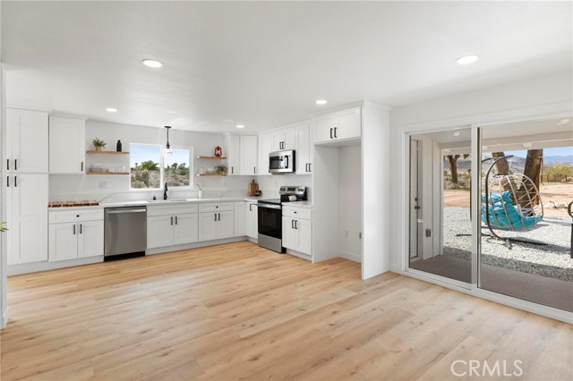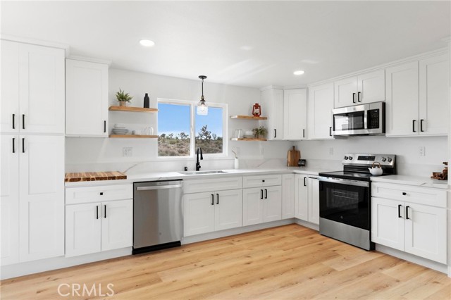 Welcome to 3398 Condalia Ave, a fully remodeled 3 Bed 2 Bath desert oasis on 3.65 acres of pristine, fully fenced land surrounded by beautiful Joshua trees and breathtaking mesa and sunset views. Located in the peaceful New Horizons area, this property offers the perfect blend of modern living and serene desert charm. Inside, every inch has been redone from the ground up — featuring a brand-new kitchen, bathrooms, drywall, electrical, plumbing, HVAC, flooring, and roof. The bright and open layout includes 3 bedrooms and 2 bathrooms totaling approximately 1,458 sq. ft. of turn-key living space. You’ll also find a separate laundry room and a large covered patio perfect for relaxing and taking in the Sand-to-Snow, Black Lava Butte, and Flat Top Mesa views. The property’s huge 6-car garage/workshop, plus two additional storage/workshop units, provide endless space for projects, equipment, or creative pursuits. The graveled garden and open land are ideal for gatherings or future landscaping ideas. A private well sits on the property, while the home is conveniently connected to city water. Zoned for Rural Living (RL), this property allows up to nine animals or horses — making it perfect for those seeking space, freedom, and possibility. With beautiful Joshua Tree National Park just 15 minutes away, Palm Springs 45 minutes, and Twentynine Palms Marine Base 40 minutes, this home offers the best of desert living with easy access to everything. Whether you’re looking for a peaceful full-time home, weekend getaway, or short-term rental investment, this stunning property delivers comfort, privacy, and endless desert beauty.