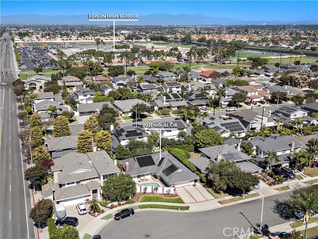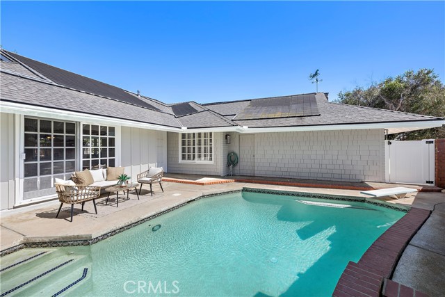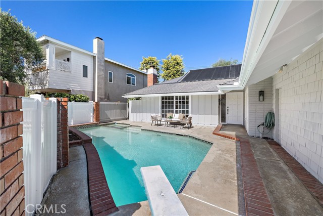 Nestled in one of the most sought-after pockets of South Huntington Beach, this charming single-level residence offers the perfect blend of comfort, style, and location. Boasting three spacious bedrooms and two well appointed bathrooms, this light and bright home invites you in with a freshly painted exterior and interior, sleek slate flooring, and an open, airy layout ideal for both entertaining and relaxing near the pool. Originally offering four bedrooms, the floor plan has been maximized for open living space but can easily be converted back to a four bedroom home if need be. Renovated over time, the property features recessed lighting, smooth-finish drywall, an upgraded electrical panel with recessed lighting, paid-off solar panels dedicated to heating the pool, composition shingle roof, upgraded windows and new vinyl fence and landscaping. Designed with outdoor living in mind, step outside to your own personal oasis in the front with your pool and spa or enjoy your low maintenance rear yard with mature fruit trees and foliage offering an abundance of privacy. Whether you're hosting a weekend barbecue or enjoying a quiet evening under the stars, this home delivers the perfect backdrop. Located within walking distance to Huntington State Beach and award winning schools and just a short bike ride to Newport Beach, this South of Hamilton home checks the boxes for a coastal lifestyle at an incredible value.