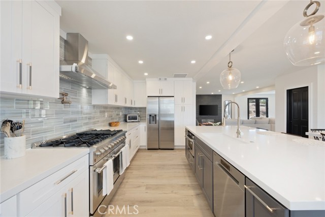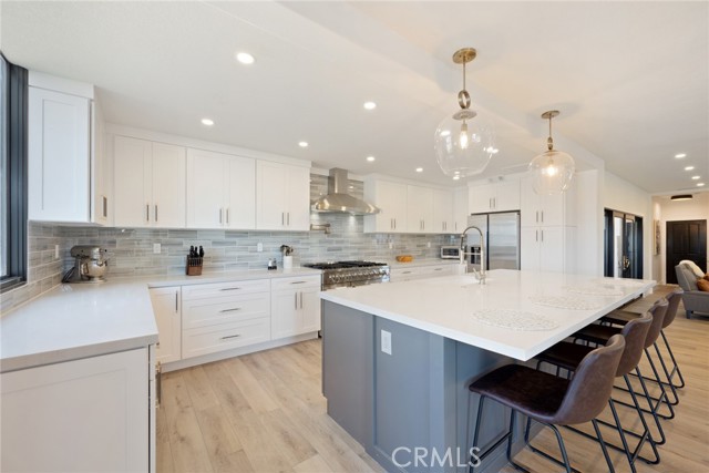 Inside, discover a thoughtfully reimagined floorplan with expansive dining and living spaces, brand-new flooring, and oversized view windows that flood the home with natural light. The chef’s kitchen is a true showpiece, featuring quartz countertops, custom cabinetry, an 8-burner gas stove, wine cooler, coffee bar, banquette seating, and under-drawer microwave, ideal for entertaining or everyday living. Every bathroom has been beautifully updated, with the primary suite boasting a spa-like retreat with a freestanding soaking tub and designer finishes. Additional highlights include: