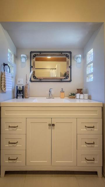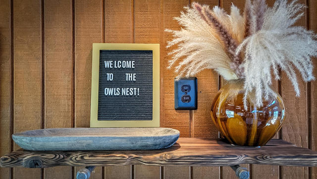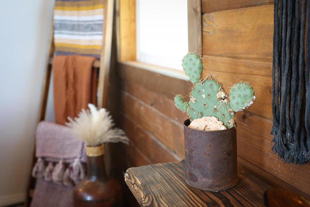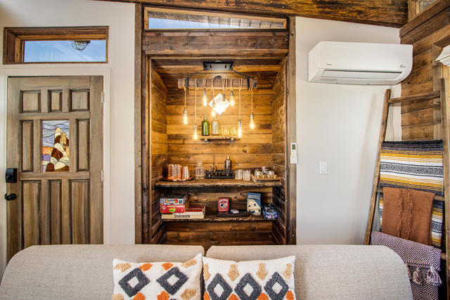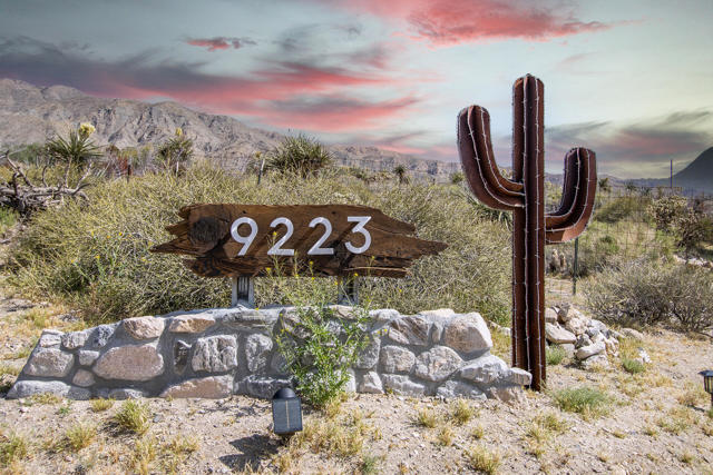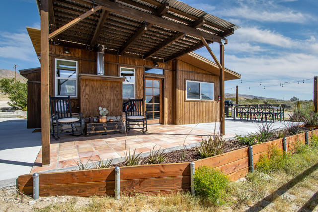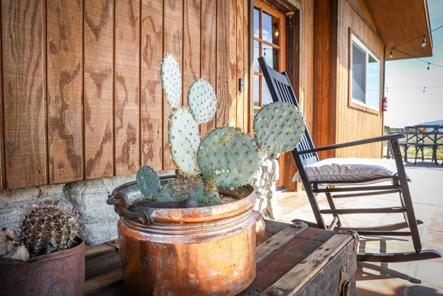 Welcome to Owl's Nest--a truly one-of-a-kind high desert retreat situated on 5 sprawling acres with breathtaking panoramic mountain views in every direction, including stunning vistas of Big Morongo Canyon. This beautifully renovated home captures the essence of high desert living with warm, rustic charm and thoughtful design throughout. Though compact in size, every inch of this home has been masterfully utilized. The inviting living room features large picture windows that flood the space with natural light and frame the spectacular views, along with a cozy gas fireplace perfect for cool desert nights. Just outside the living room, you'll find a small fenced-in dog run area--ideal for your furry friends to safely enjoy the desert air. The kitchen is a true gem, offering a charming breakfast bar with a picture-perfect window where you can sip your morning coffee while taking in the serene landscape. With a copper sink, wood cabinetry, and stylish finishes, the cabin radiates character and warmth. Outside, the magic continues with two horse stalls and a painted water tower adorned with an owl--an ode to the property's name. A fully finished and beautifully styled shipping container offers two additional sleeping areas and a bathroom, creating a dreamy private guest retreat. Whether you're looking for a peaceful full-time residence, a weekend getaway, or an incredible investment opportunity as a vacation rental, Owl's Nest offers an unmatched blend of comfort, charm, and natural beauty--this is desert living at its finest.