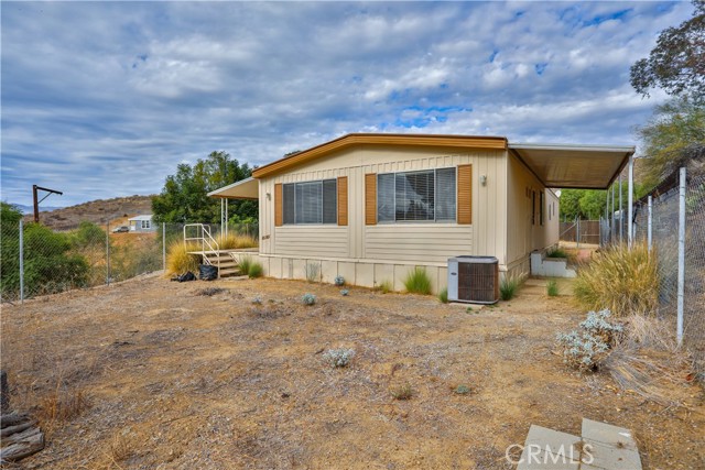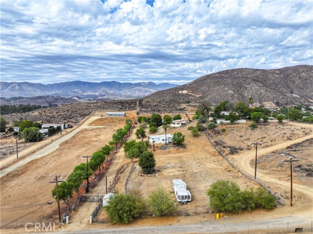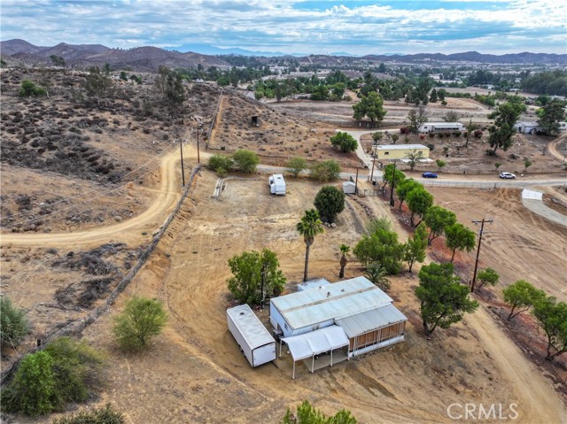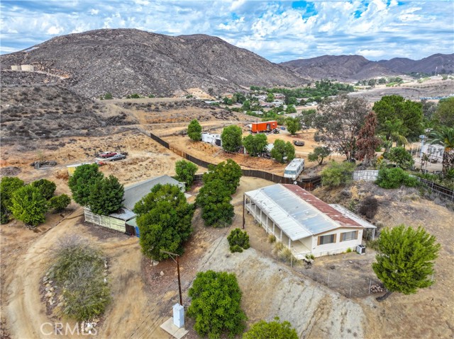 Prime Property, Approximately 2.4 acres with 3 structures. Main House is a 3 bedroom, 2 bath manufactured home on a permanent foundation, an additional ADU/Granny unit is a 2 bedroom 1 bath & a separate garage/workshop building that is being used as a storage unit, but can be converted back to a 4 car garage. Property has an RV hook up for power and septic. There are 8 fruit trees & 2 work/utility/storage sheds. Property is fenced with an automatic gate at entrance. Conveniently located near the 15 frwy, Costco, Walmart, Chick-fil-A, Home Depot and much more.