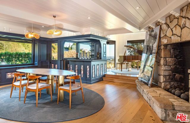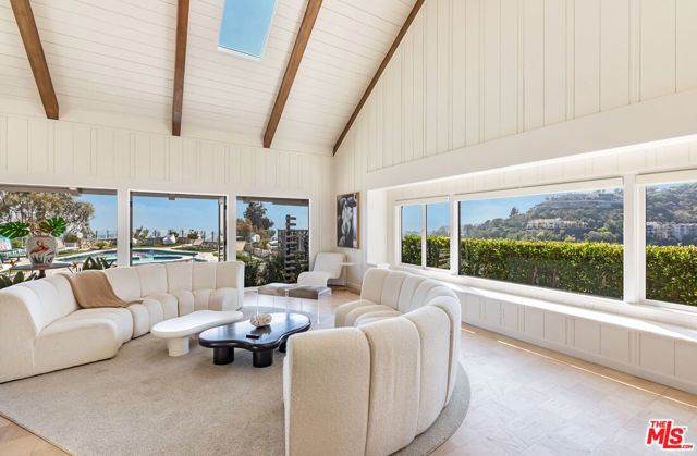 Perched atop a private promontory just minutes from the iconic Beverly Hills Hotel, this timeless estate captures sweeping, unobstructed views from Palos Verdes to the sparkling "Queen's Necklace," showcasing the very best of Los Angeles from sunrise to sunset. Inside, natural light floods an airy open floor plan spanning approximately 6,500 square feet, where a grand fireplace anchors the spacious family room and expansive windows frame breathtaking vistas in every direction - creating a seamless connection between indoors and out. The oversized primary suite centers around a cozy fireplace and a spa-inspired bath that flows effortlessly to a private outdoor shower. Two additional ensuite bedrooms within the main house provide comfort and privacy, complemented by detached quarters with private entry and a full bath a tranquil retreat for guests or staff. Upstairs, a private theater, dry sauna, and flexible lounge offer spaces to unwind, entertain, and recharge - each designed for elevated living. Beyond the residence, the grounds unfold into a resort-style oasis where panoramic views surround the pool, spa, and three fire pits, all enhanced by a full outdoor surround-sound system. More than a home, this is a sanctuary in the sky - a rare Beverly Hills promontory estate capturing the essence of elevated living.