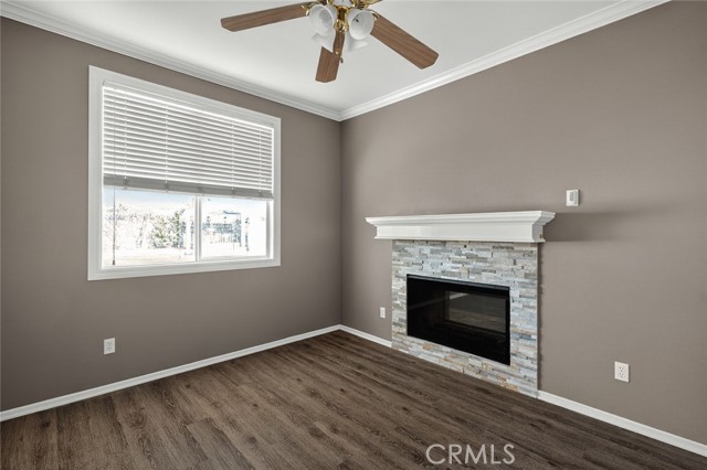 A versatile downstairs bedroom with its own stacked-stone fireplace and mantel can easily serve as a den, home office, or media room. Upstairs, you’ll find four additional bedrooms, including a generous primary suite with a walk-in closet, dual sink vanity, and separate tub and shower.