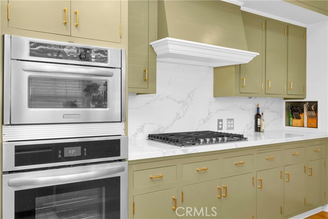 The main level features expansive formal living and dining rooms, highlighted by a herringbone-tiled fireplace, custom lighting, and French doors that open to the lush backyard. The remodeled kitchen pairs sage cabinetry with quartz countertops, stainless steel appliances, and a charming garden window. A versatile sunroom with terracotta tile floors and direct outdoor access provides additional space for relaxation or entertaining. Two first-floor bedrooms, including one with an ensuite bath, offer flexibility for guests, an office, or multi-generational living.