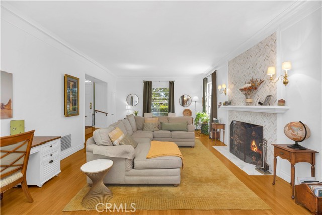 Welcome to 929 East Marshall Place, a distinguished two-story Colonial Revival nestled in the heart of Bixby Knolls. Offering five bedrooms, four bathrooms, and 3,100 square feet of updated living space, this residence seamlessly blends timeless architecture with modern comforts. The home’s curb appeal is undeniable with its symmetrical façade, landscaped grounds, and brick walkway leading to an arched entry create an inviting first impression. Inside, a grand foyer welcomes you with hardwood floors, intricate moldings, and an elegant iron staircase, setting the stage for sophisticated yet livable interiors.