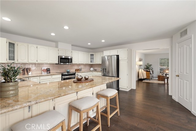 Welcome to Bell Canyon. Enjoy this 5 bedroom/3.5 bath home with almost 3200 square feet of comfortable living space. Enter elegant double beveled-glass doors into a bright foyer flanked by formal living and dining rooms that frame the staircase. The spacious chef’s kitchen features abundant cabinetry, a walk-in pantry, granite counters, and a sunny breakfast nook with views of the lush canyon greenery. Enjoy meals at the counter, in the breakfast area, or outdoors on the expansive deck.