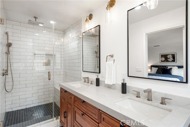 Upstairs, you’ll find five bedrooms (one currently used as an office). Two of the bedrooms are large en suites with beautifully updated bathrooms, including the spacious primary suite featuring ample closet space. The primary bath offers dual sinks, a soaking tub, a subway-tiled shower, and a Toto Washlet toilet — complete with a remote control (because luxury can be fun, too!).
