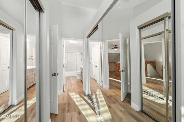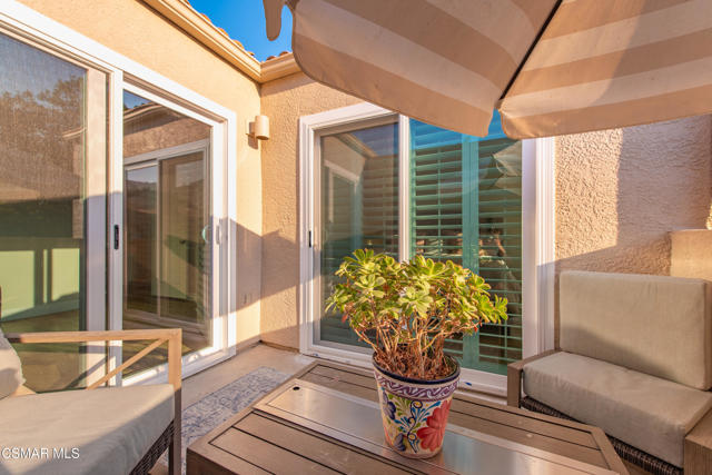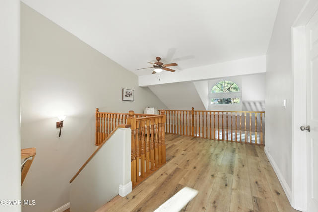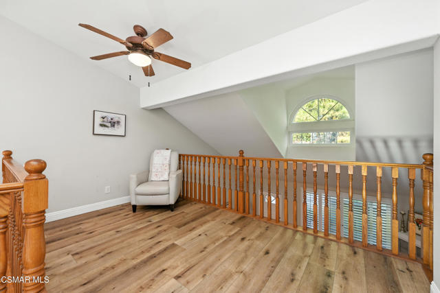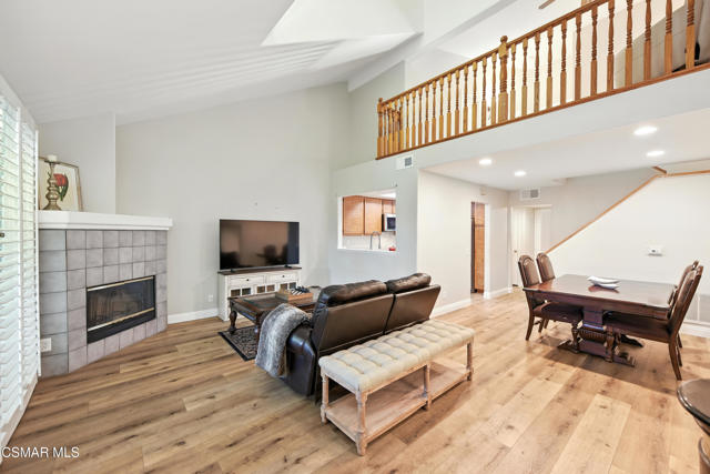 Gorgeous Spanish-Style Townhome in Scenic West Chatsworth! Perched in a serene, Spanish-inspired community near the iconic ''Garden of the Gods'' and Stoney Point rock formations, this beautifully updated home offers the best of California living--on the cusp of Ventura and Los Angeles Counties.Step through a peaceful front patio with a stunning outdoor stone fireplace, and into a warm, light-filled family room with soaring vaulted ceilings, cozy fireplace, and a newer dual-pane slider with plantation shutters. Wood-like floors flow seamlessly throughout, creating a clean, modern feel. The upgraded kitchen features a full suite of high-end KitchenAid stainless steel appliances, open sightlines to the family room, and an adjoining dining area with dramatic ceilings--perfect for both everyday comfort and entertaining. Retreat upstairs to the spacious primary suite with a private balcony, expanded walk-in closet, and luxe en suite bath. Spacious secondary bedroom offers access to the upper private balcony. Large loft offers ample opportunity to be transformed to fit your lifestyle. Bathrooms are enhanced with newer vanities, modern fixtures, and abundant natural light from a skylight. Additional upgrades include recessed lighting, fresh neutral paint, upgraded baseboards, newer dual-pane windows and sliders, newer HVAC, and water heater. Sleek newer refrigerator, washer, and dryer are all included. 2 attached car garage with upgraded cabinets and flooring! Perfect to showcase your cars. Enjoy resort-style community amenities including lush greenbelts, a sparkling pool, and a relaxing spa. Conveniently close to the 118 Freeway, shopping, dining, hiking trails, and surrounded by breathtaking mountains--this is California living at its finest.
