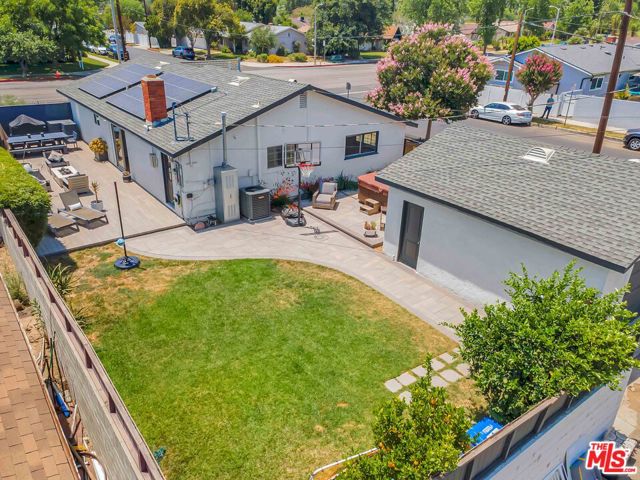 Welcome to this West Hills single family ranch home, offering the perfect blend of contemporary style and cozy charm located on a corner lot. A beautifully landscaped front yard with drought-tolerant and native plants offers year-round beauty with minimal upkeep. As you enter, you'll be greeted by brand new luxury vinyl flooring and fresh paint throughout, creating a bright and inviting atmosphere. The expansive family room is perfect for gatherings and movie nights. The updated kitchen features black cabinetry with soft-close drawers, spacious island, new stainless steel appliances, and next to the laundry room, offering a side-by-side washer and dryer as well as convenient access to the backyard. The oversized dining area is complete with a cozy fireplace and sliding glass door that opens to a stunning backyard. Step into the backyard, which is your own private retreat, designed for effortless indoor-outdoor living. Enjoy al fresco dining under the stars on the spacious patio and sleek built-in concrete fire pit, unwind in the hot tub, or host unforgettable gatherings in the stylish outdoor entertaining area. Surrounded by lush greenery for ultimate privacy, the space features dedicated zones for lounging, dining, and relaxing, making it perfect for both intimate evenings and vibrant social events. Unlock the possibilities with the 2 car detached garage, ideal for anyone looking to expand their living space or create additional income opportunities. 3 spacious bedrooms, including a true primary suite with ensuite bathroom for added privacy and convenience. Additional full bathroom located off the main hallway. Added upgrades include; solar panels, upgraded electrical panels, low voltage lighting throughout the backyard, EV charger in the garage, and new copper plumbing. Enjoy the convenient location close to Shopping, Warner Center, The Village, Parks, and Award-winning Schools. Call for a showing today!