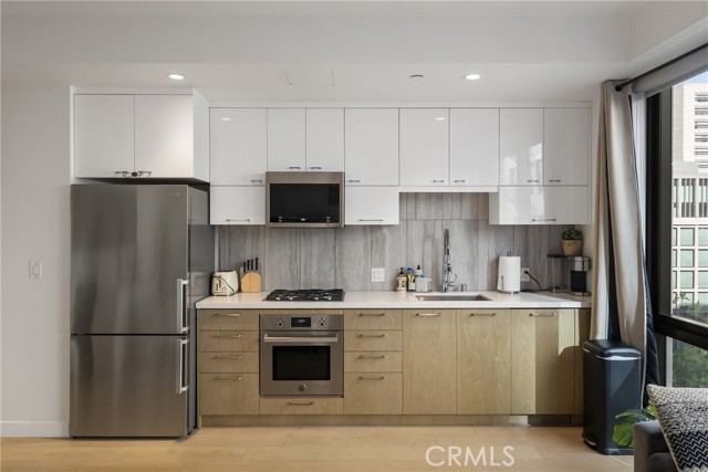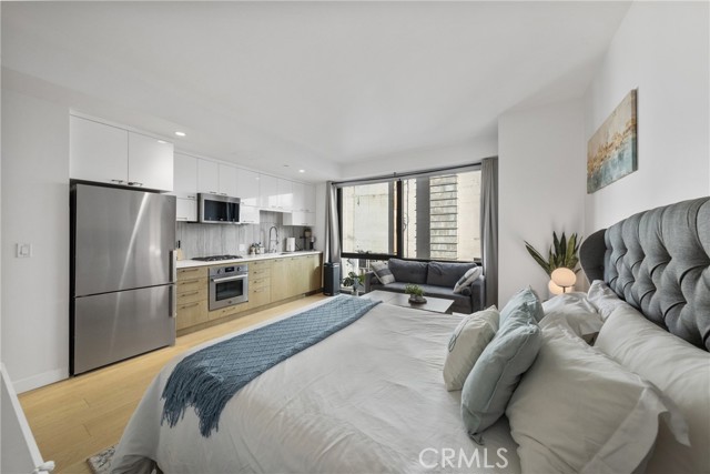 The heart of LA Historic Core in DTLA. Exquisite studio at the coveted tower at Perla, a brand new luxury vertical community. This spacious unit offers the floor-to-ceiling windows, European white oak floors, Bosch washer/dryer, high-performance Bertazzoni kitchen appliances, high-end custom cabinetry, fiber optic pre-wiring, and energy-efficient LED lightings. it comes with one (1) assigned parking space .You will enjoy breathtaking nighttime view and Perla's premium amenities spanning over 49,000 sf from the rooftop with fire pits, and airy four-story Atrium housing the multiple lounges, yoga studio, spin cycle room, the gym fully equipped with professional equipments, theater room, a conference room, a media room with casual seatings, a quiet outdoor garden terrace with trees and much more! Modern Art Deco style club house with the chefs kitchen, an adjacent dinning room, a stylish wine tasting room, library lounge, game room. Pet owners will truly appreciate a professional pet spa and dog parks. Multiple outdoor BBQs with separate dining areas, multiple fire pit lounges, a sparking pool and spa, grass lawn with lounging chairs are thoughtfully spread outside of the main amenity floor. Live Work options are plentiful with several meeting rooms and workspaces throughout the building. It is conveniently located to LA's notable cultural landmarks, transportations, and parks, where residences can enjoy the easy access to Grant Central Market, the acclaimed Bradbury building, the Museum of Contemporary Art, Regent Theater, Walt Disney Concert Hall, Pershing Square, and Grand Park. Also Perla's prime location offers a quick access to LA downtown's vibrant scene, dozens of trendy dinning, shopping options, LA Metro lines, and UCLA campus coming soon next door. At Perla, you can truly embrace the pinnacle of vertical community living in timeless style, where luxury meets convenience. Must see to appreciate what this unit and Perla community can offer! This is an idyllic unit for a discerning buyer.