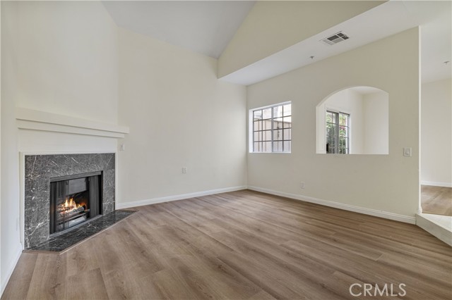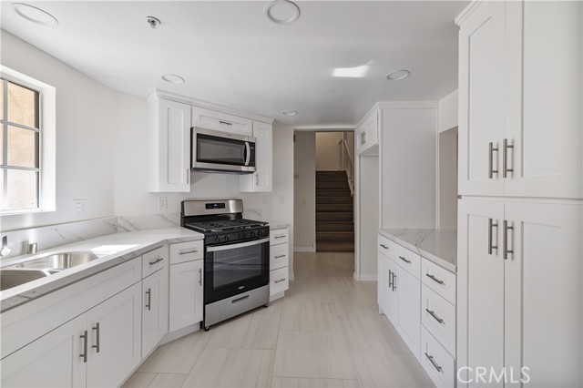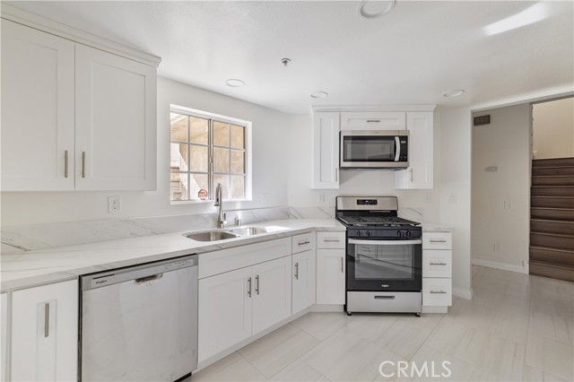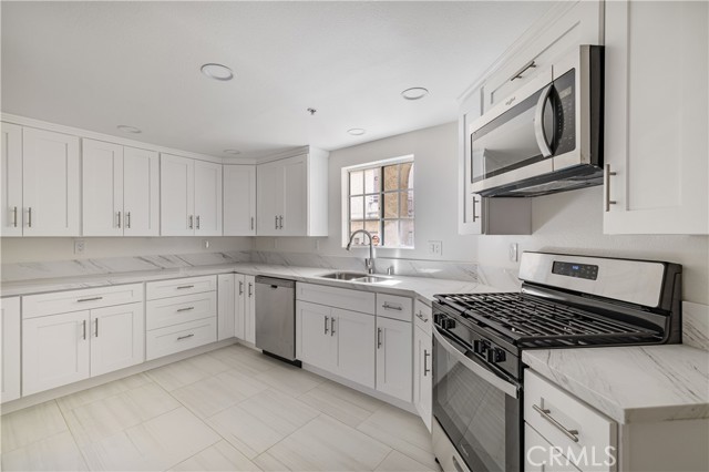 Located in the gated community of Astoria Gardens, this beautifully upgraded 3-bedroom, 2.5-bath home stands out for its stunning architectural design, vaulted ceilings, and warm, inviting style. The kitchen has been remodeled with stone countertops, stainless steel appliances, and modern finishes. Every surface throughout the home shows off gorgeous upgrades. The living room features a cozy fireplace and connects to a formal dining area thats perfect for entertaining. Upstairs, the spacious primary suite offers a walk-in closet, private balcony, and a fully remodeled bathroom, while the secondary bedrooms and bath have also been updated with the same attention to detail. On the third level, a private skydeck captures peaceful mountain views, an ideal place to unwind. Complete with an attached two-car garage, indoor laundry and HOA coverage for trash, water, and front yard maintenance. This move-in-ready home blends style, comfort, and function in one of Sylmar's most desirable gated communities.