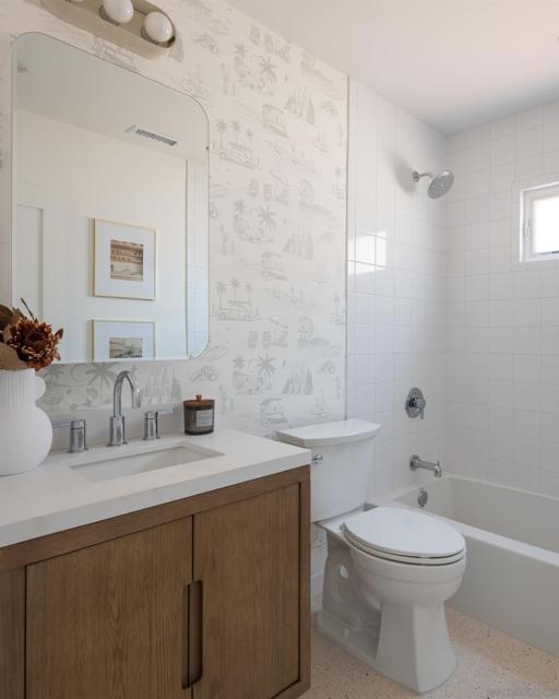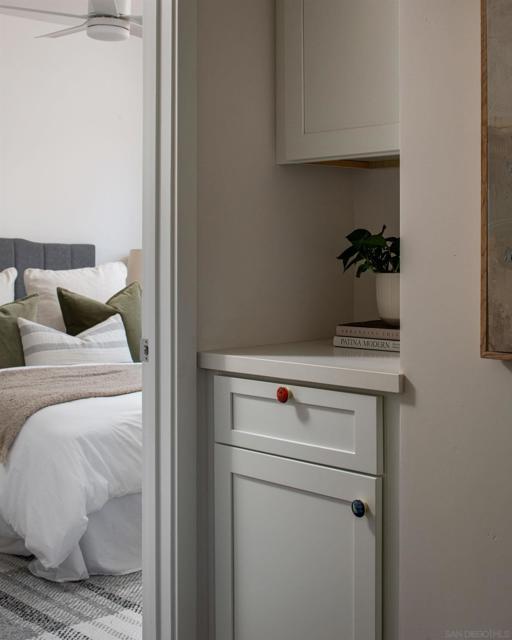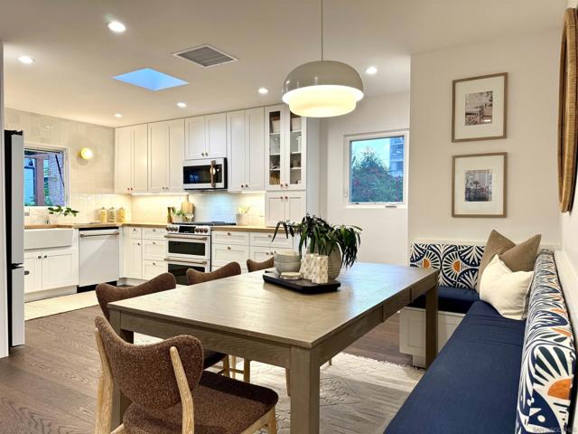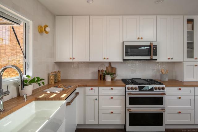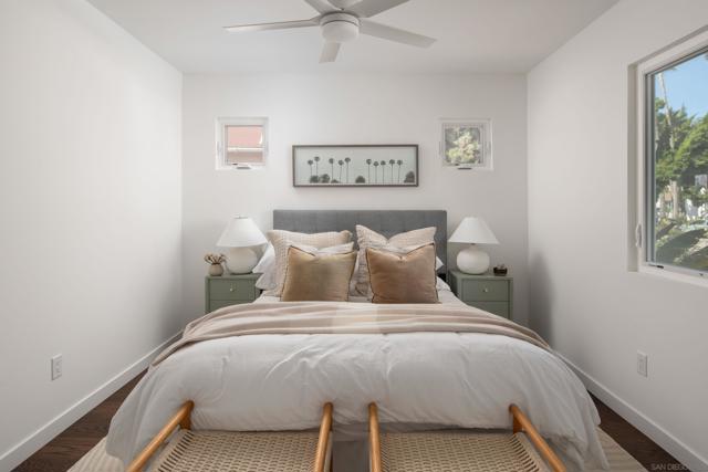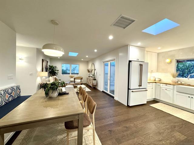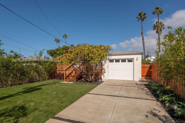 Vintage PB meets modern PB. Are you tired of seeing the same style in every newly-remodeled home? Well, this is the one for you! Inspired by the original 1940s Pacific Beach bungalow, this home blends classic coastal charm with contemporary touches and a completely reimagined floor plan designed for both entertaining and everyday living. The primary ensuite features a private deck and a spacious bathroom with a dual vanity sink from Pottery Barn, a sizable closet and terrazzo tiles. The open living space boasts loads of natural light with two skylights and French doors leading out to the back deck. The kitchen has pops of color, retro-inspired fixtures and a built-in banquette. The back deck is the perfect area to entertain guests with plenty of room for outdoor dining. The large five-foot pop-out window from the kitchen to the backyard features a surfboard bar top, perfect for passing beverages out to your guests and creating classic California indoor/outdoor vibes. The all new roof, landscaping, cabinets, countertops, appliances, and fixtures are just a handful of additional bonuses this property has to offer. This place is ready for you to call it home for the holidays!