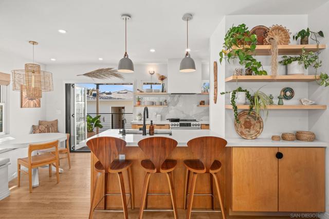 Ideally positioned along Oceanside’s coveted coastline, this thoughtfully reimagined residence embodies the essence of elevated coastal living. Just moments from the sand, local coffee spots, and the vibrant downtown scene, it delivers a lifestyle of effortless sophistication. Behind a sleek, motorized entry gate, a private retreat awaits featuring rich IPE decking, a designer Modpools 8’x16’ heated shipping container pool, and an outdoor shower for the perfect post-beach unwind. A La Cantina bi-fold door blurs the line between indoors and out, creating a seamless flow for entertaining or relaxed coastal living. Extensively rebuilt in 2020, the home boasts all-new systems throughout including roof, plumbing, sewer main, gas lines, full electrical rewire with panels and sub-panels, owned solar with Tesla back up battery walls, central HVAC, gutters, and landscape drainage. The curated kitchen offers both function and finesse, complete with a walk-in pantry and butler’s nook. Exterior upgrades include Hardie siding and trim, new hardscape, fencing, and a modern landscape design that enhances both privacy and curb appeal. A detached, alley-access garage/shed with power, lighting, and an automatic door offers direct ADU potential ideal for guests, a studio, or additional income. Every detail of this home reflects quality craftsmanship and a refined coastal sensibility.