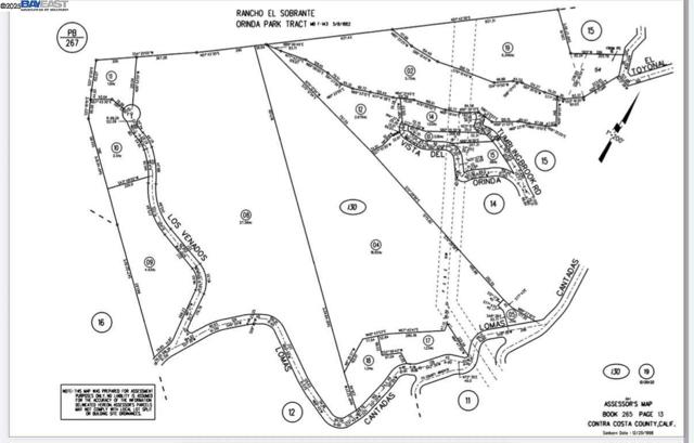 View lot(s) nestled in the El Toyonal neighborhood of the Orinda Hills. Minutes from the Caldecott Tunnel, the vibrant village of Orinda, close to sought-after community services, excellent schools, and city amenities. Raw and ready for development! The lot(s) combined measure over 5.3+ acres of raw land. The 3 combined parcels have ingress and egress off Vista Del. Vista Del has paved parking. APNs # 265-0130-007, 265-0130-012-005, 265,140-001-008. There is a public water supply on the property. The other basic utilities are at the street(s) and would need to be brought to the desired building site. Be careful when entering the property. It is hilly and there are no paved walkways or access roads, so wear appropriate footwear. The parcels were recently cleared of trees, underbrush, and debris to satisfy the Fire Marshall. Come with your imagination and envision the potential of this diamond in the rough! The agent and seller have not investigated building or developing the lots. Buyers are advised to research all matters related to development, construction, public utilities and all matters associated with developing raw land in Orinda. Buyer should independently contact appropriate tradespersons, the City of Orinda, utility companies, and building professionals.