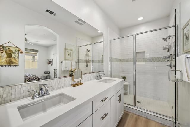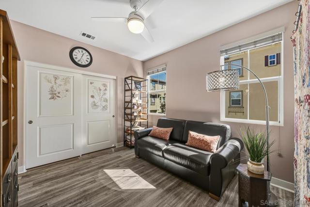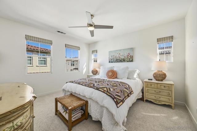 FHA and VA Approved! Welcome to this stunning end-unit townhome with a private entrance, located in the highly desirable gated community of St. Cloud within Ivey Ranch, Oceanside. This beautifully maintained home offers the perfect blend of modern upgrades, functional layout, and resort-style living just minutes from the beach, harbor, shopping, dining, golf, and convenient freeway access to Highways 76, 78, and I-5. Step inside to find an inviting open floor plan featuring luxury vinyl plank flooring throughout and newer carpet on the stairs and upper bedrooms. The chef’s kitchen showcases crisp white cabinetry, quartz countertops, a subway tile backsplash, stainless steel appliances, a gas range, and a pantry—all with a lovely view of the pool. Enjoy outdoor living on the private balcony just off the dining area, perfect for a BBQ or morning coffee overlooking the community. The home offers four spacious bedrooms and four full bathrooms, including a first-floor bedroom with an ensuite bath, ideal for guests or a home office. The main level features a bedroom, full bath, kitchen, dining, and living areas for easy everyday living. Upstairs, you'll find two additional bedrooms, each with its own ensuite bath. The primary suite features a large walk-in shower with custom tile work, white vanities, and quartz countertops in all bathrooms for a cohesive modern look. Additional highlights include an attached two-car 240V EV-ready garage, resort-style community pool and spa, and secure gated entry. Perfectly positioned across the street from Martin Luther King Jr. Park, which offers a skate park, baseball fields, soccer fields, and a tot lot, this home provides exceptional recreation options right at your doorstep. Experience the best of coastal living with comfort, style, and convenience all in one beautiful package!