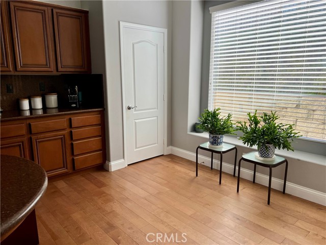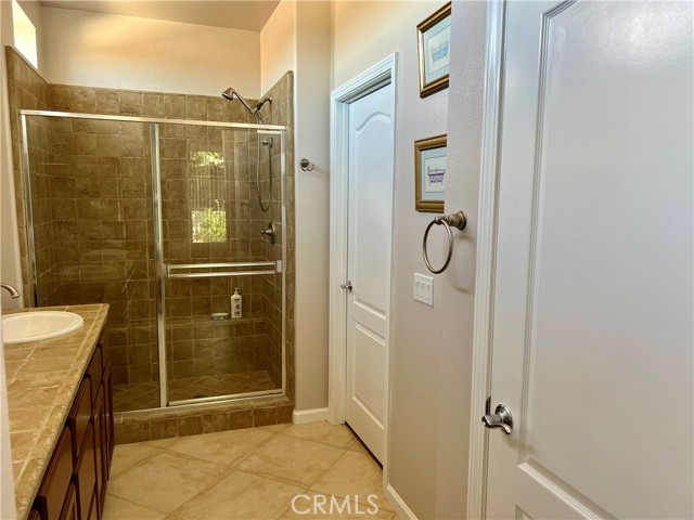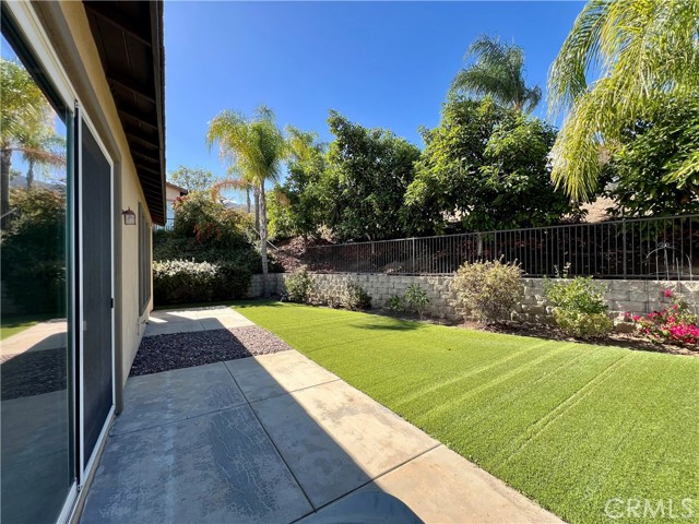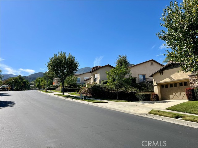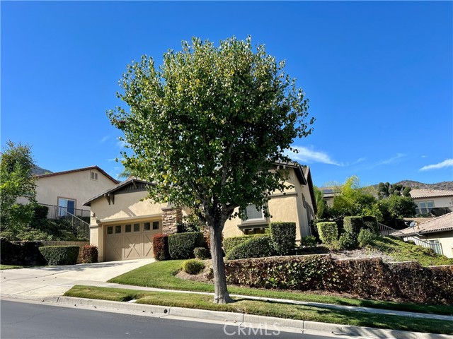 Nicely landscaped yard with turf, flowers, bushes and trees. View to the valley. Covered side patio. 2 car garage with built in cabinets and side door to the side yard.