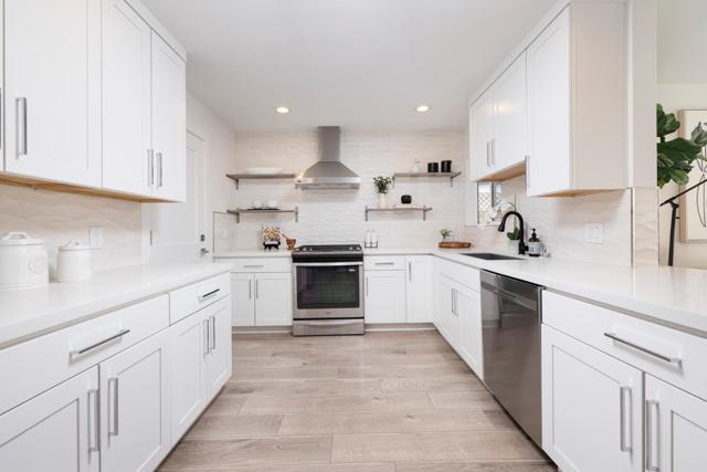 Beautifully updated 3-bedroom, 2-bath home in the sought-after Woodside Plaza neighborhood of Redwood City. Filled with natural light, this move-in ready residence combines modern updates with a warm, inviting feel. Step into the bright living room featuring a cozy fireplace and wide-plank hardwood floors that flow throughout the home. The stylish kitchen showcases quartz countertops, stainless steel appliances, custom cabinetry, and a breakfast bar that opens to the dining and family areas perfect for everyday living and entertaining. The open family room features neutral tones and plantation shutters, with sliding doors that lead to the backyard for seamless indoor-outdoor flow. The primary suite includes a spacious walk-in closet, updated bath with dual vanity and walk-in shower, and private access to the backyard. Additional bedrooms are generously sized, offering comfort and versatility for guests, a home office, or growing family needs. The sunny backyard provides a private retreat ideal for weekend gatherings. Conveniently located near parks, shopping, and vibrant downtown Redwood City, this turnkey home is perfect for first-time buyers ready to move right in.