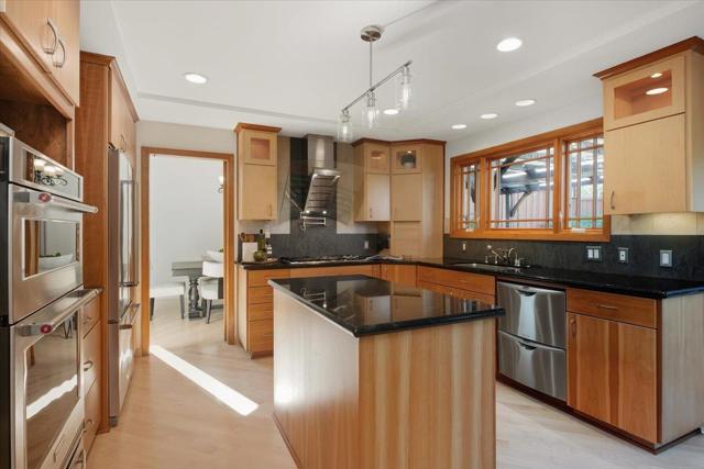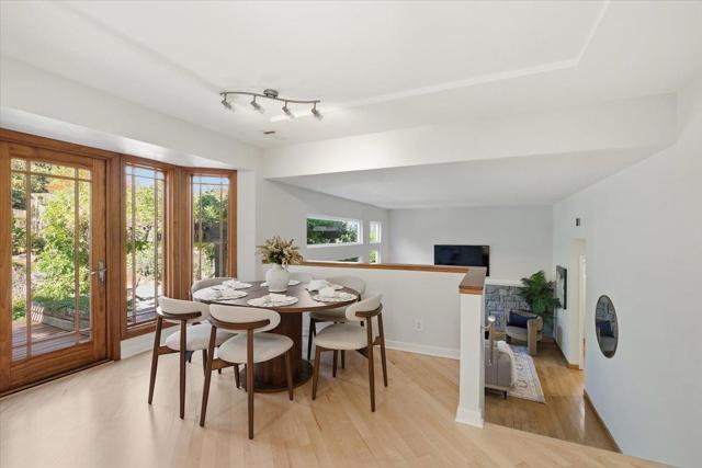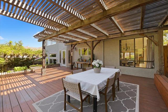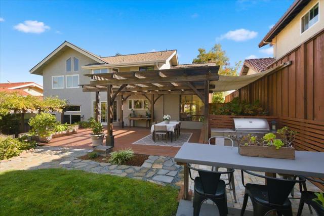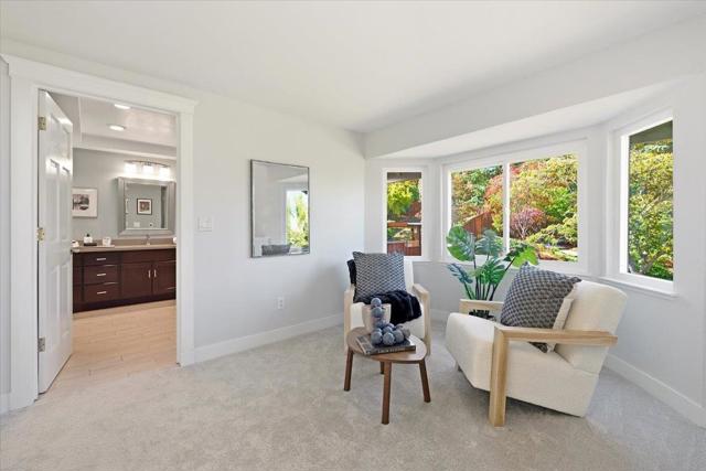 Nestled in a peaceful foothills neighborhood bordering Los Gatos and Almaden, this 4-bedroom tri-level home is bursting with character. The impressive living room features a vaulted ceiling and a gorgeous designer fireplace flanked by custom cabinetry. Enjoy seamless entertaining with a generous formal dining room and a separate family room that opens to the backyard. The central kitchen is a chef's delight, offering abundant custom cherry and maple cabinetry, a wine fridge, and a pot filler, plus a spacious breakfast area. The primary suite is a true retreat with an elevated sitting area - perfect for a sunny home office, dream dressing room, or relaxation with a sumptuous view. The primary bath boasts a large walk-in shower, an attractive free-standing soaking tub, and a huge double vanity. Three additional bedrooms feature excellent closet space and share a large family bathroom with a double vanity. The mature gardens are an entertainer's dream, featuring multiple outdoor living vignettes. The awesome backyard includes a huge main patio with a built-in outdoor kitchen and a secondary lower patio, ideal for an outdoor living room with an adjacent fire pit area.