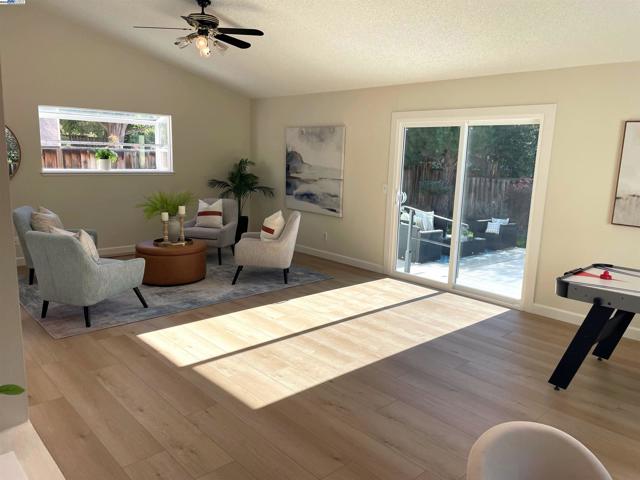 Located in the desirable Mission San Jose neighborhood within one half mile radius of Chadbourne Elementary, Hopkins Jr High and Mission San Jose Highschool. View of the hills from spacious front porch. Large additional rec room with vaulted ceiling, and ceiling fans, perfect for entertaining and gatherings. New Luxury Vinyl Plank Flooring throughout downstairs and all bathrooms. New carpet in all four bedrooms. Fresh interior and exterior paint. New Lighting throughout. New oven, dishwasher, and microwave. Spacious pantry in kitchen. Newer concrete on driveway, sidewalks and back patio. Low maintenance yards. Section One Termite Clearance. Close vicinity to I-680, BART, Parks, Trails, Mission Peak, Ohlone College, and shopping.