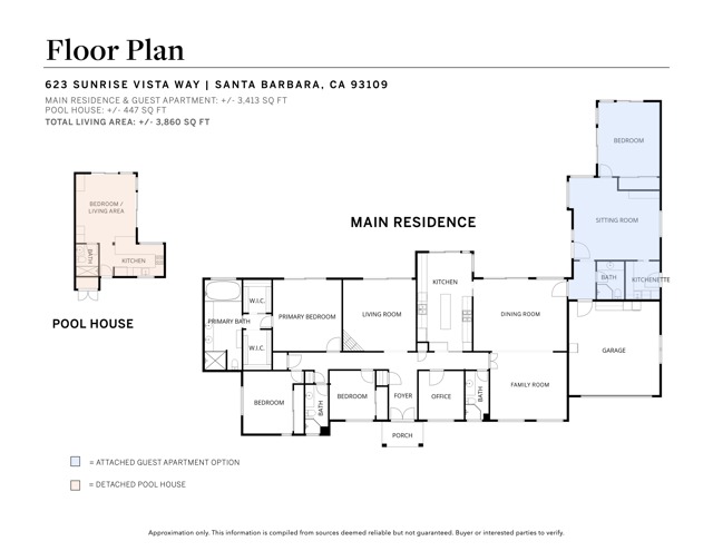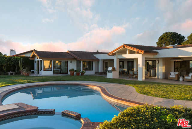 Welcome home to privacy, tranquility, and 180 of mesmerizing ocean-and-island views from this renovated Spanish-style Alta Mesa home! Offering effortless single-level living in a secluded enclave of just 9 homes, the +/- 3,860 sqft residence has been updated with new flooring, new paint, new smooth-coat stucco, a remodeled pool house, and more! The property's versatile layout features an attached guest apartment and a detached pool house, providing exceptional privacy, flexibility, and convenience in a breathtaking coastal setting. Even from its peaceful ocean-view perch, the home is mere minutes from Mesa favorites such as Lazy Acres, Lighthouse Coffee, Mesa Burger, Shoreline Park, and morethe perfect blend of serenity and proximity to the best of Santa Barbara.Throughout the spacious home, enormous windows and sliding doors welcome abundant natural light and frame the panoramic ocean views, while vaulted ceilings create an open and airy ambiance. The main residence features 3 bedrooms plus an office, and the attached guest apartment features its own living room, kitchenette, bedroom, and a separate entrance. On the other wing of the main residence, the primary bedroom offers an alluring getaway with striking ocean views, dual walk-in closets, and a large bathroom suite with a jetted tub. Just outside, the fully remodeled pool house adds a new kitchen and bathroom, ideal for guests or extended stays.Next to the pool house, a sparkling pool and spa meet the endless horizon, surrounded by sunlit patio areas perfect for quiet mornings, a glass of wine at sunset, or entertaining family and friends. A central lookout deck offers an irresistible opportunity to relax and take in the exquisite coastal vistas. From its rare hilltop vantage point, this beautiful property offers an ideal combination of desirable solitude, a versatile layout, convenient location, association amenities like tennis and pickleball courts, and truly captivating views that must be seen to be believed!