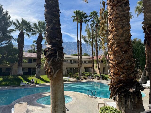 Behind the gates of Palm Springs Villas II, this 1 bedroom, 1 bath ground level unit features updated flooring, remodeled bathroom plus a newer range. Currently rented through 2/28/26. Full time or part time living possibilities just minutes to downtown Palm Springs. Amenities include community pools/spas and BBQ grills, tennis. Unobstructed views out the windows that do not look out to other units with wide open space.