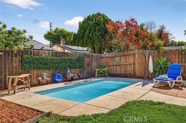 Welcome to La Casa Court—a peaceful cul-de-sac with no through traffic, perfect for families seeking both privacy and convenience. This charming 3-bedroom, 2.5-bath home features impressive soaring ceilings, spacious living areas, and an abundance of natural light. The formal living room, with elegant tile flooring and a cozy gas fireplace with mantel, provides an inviting space for both relaxation and entertaining.The home offers two large living spaces, perfect for multiple uses, from family movie nights to more formal gatherings. The functional kitchen, tucked in the corner for added privacy, provides a functional layout with plenty of storage and counter space. A spacious dining area adjoins the kitchen, creating a seamless flow for mealtime and entertaining. A spacious laundry room with ample storage and a convenient half bath complete the main floor.Upstairs, the private primary suite offers dual closets and an en-suite bath. Two additional bedrooms share a well-maintained second bath, offering plenty of space for family or guests.Step outside to the beautifully landscaped backyard, with a covered patio and in-ground pool—perfect for enjoying all four seasons. There’s also space for your own vegetable or fruit garden, adding a personal touch to this outdoor haven.Located just minutes from Bidwell Park and within walking distance of Pleasant Valley High School, Marigold Elementary, and Bidwell Junior High, this home offers a prime location for families. Plus, it’s close to shopping, dining, and other amenities for added convenience.Don’t miss the opportunity to own this well-maintained home in a family-friendly neighborhood—it's the perfect place to create lasting memories!