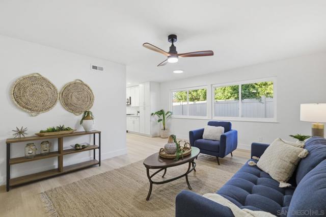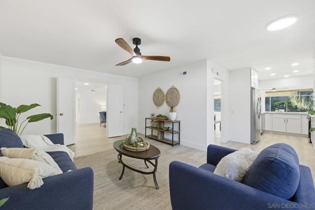 Welcome to this beautifully renovated, bright, airy home in the desirable 7 Oaks 55+ community where you can enjoy low HOA annual fee and a quiet, comforting neighborhood environment. This charming 2 bedroom, 2 bath home has a tastefully remodeled kitchen with new appliances, 2 remodeled bathrooms all tucked away on a private cul-de-sac. The primary bedroom has a large double sided closet and access to the backyard. This approximately 2110 square feet living space includes a large sunroom perfect for lounging, entertaining, home office, to mention but few options, including stunning views of the expansive, low maintenance, peaceful backyard refuge. The lot of about 0.32 acres is perfect for tranquility & entertaining aided by a large covered patio.The oversized garage provides plenty of space for parking, workspace and affords a convenient ladder access to extra storage space in the generous attic. Enjoy resort style living within walking distance in The 7 Oak's Community Center which boasts a heated pool & spa, clubhouse, pickleball, library, game room, fitness center, fully equipped ceramics & woodworking shops. The home is convenient to shopping, dining, medical facilities and the I-15.This home offers a perfect blend of comfort, convenience in a vibrant living community.