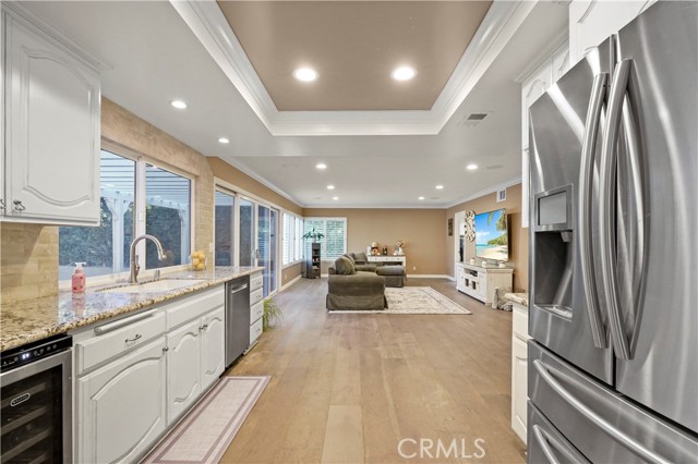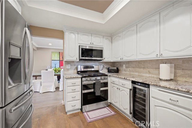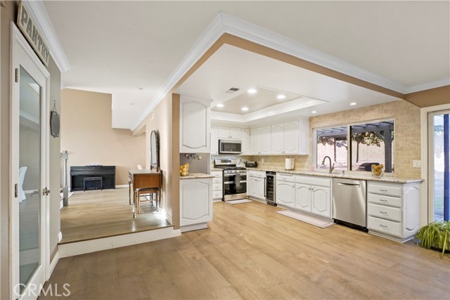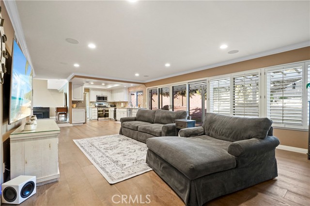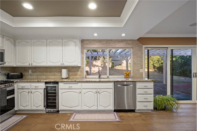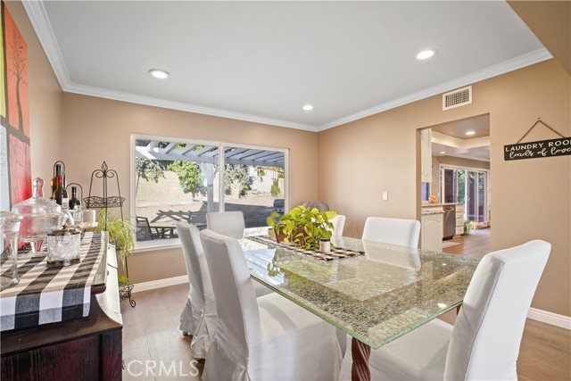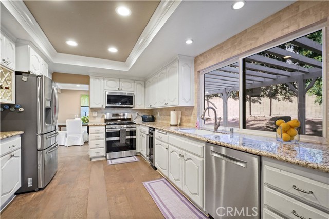 Welcome to 2229 Chesterton, a beautifully upgraded 5-bedroom, 3-bath home nestled in a peaceful cul-de-sac within one of Simi Valley's most desirable neighborhoods. This remarkable residence is designed with comfort, style, and charm, seamlessly blending thoughtful updates with timeless charm. You are sure to love the spacious primary suite located upstairs, adorned with beautiful engineered wood flooring. The home features new insulation combined with new innovative COOL-ROOF Shingles, which reflect more heat, keeping the temperature down during the summer months, along with fresh exterior paint that provides a crisp, clean look. The inside is filled with natural light entering through the energy-efficient Dual-pane windows, recessed lighting, and elegant crown molding enhance the aesthetic throughout the entire home. The main level showcases a luxurious open concept, complemented by a custom staircase. The living room's wood/gas burning fireplace is perfect for s'mores, and a mantle that eagerly awaits stockings with your young stars' names on them, perfect for cozy gatherings. The gourmet kitchen and dining area are truly a chef's delight. The remodeled kitchen features granite countertops and soft-close cabinets, equipped with high-end stainless-steel appliances, including a 5 Burner dual oven door, double oven range, and a dishwasher. An expansive pantry offers additional storage and preparation space, while the seamless flow into the pergola patio allows for ideal indoor-outdoor enjoyment. The huge backyard is a blank canvas ready for an artist to make it their own personal oasis. (BE ADVISED: 26' ft of Block wall recently fell over due to neighbors' trees and root system. Seller is willing to split the cost of the buyer's choice replacement barrier of choice.) ADU potential for multigenerational separate living.MUST SEE! This won't last.