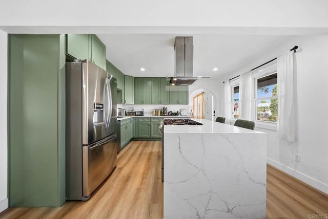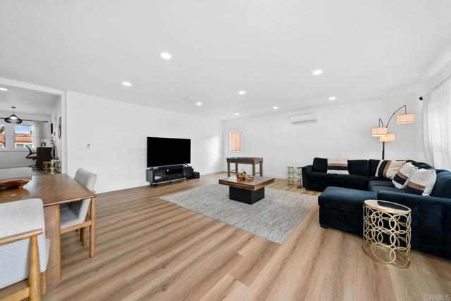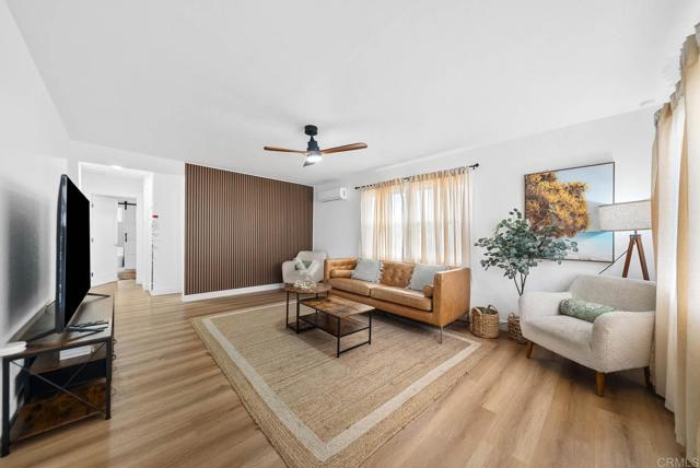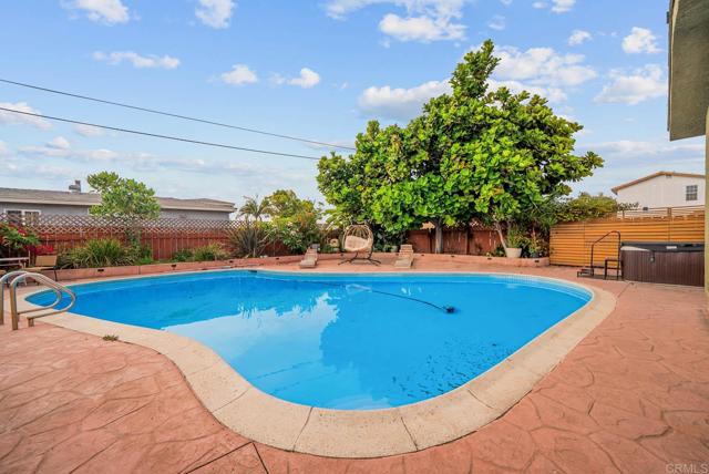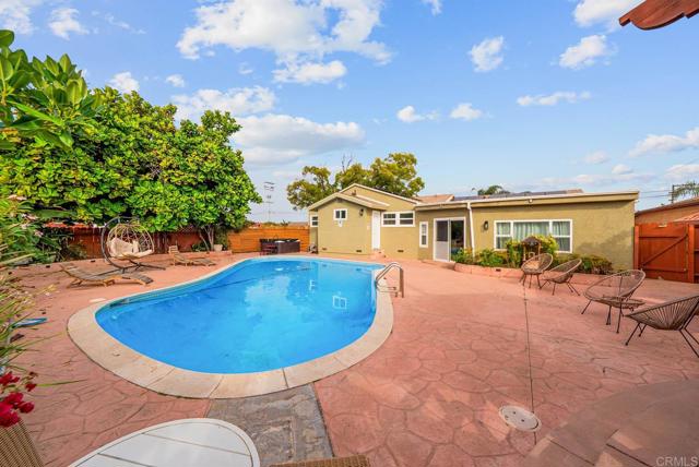 Fully updated 3-bed, 2-bath single-story home on a spacious big corner lot featuring a pool, jacuzzi, and paid-off solar. Inside, enjoy a bright open layout with modern finishes, luxury vinyl flooring, and dual-pane windows throughout. The designer kitchen offers quartz countertops, stainless-steel appliances, waterfall edge island, and custom cabinetry for a clean, contemporary look. Energy-efficient mini-split AC systems in every room provide year-round comfort. The backyard is an entertainer’s dream with a pool, spa, and covered lounge area, plus space for an ADU or short-term rental opportunity. Additional highlights include a 2-car garage and paved parking. Conveniently located near Downtown San Diego, beaches, shopping, and major freeways, this property delivers the perfect blend of style, comfort, and investment potential.