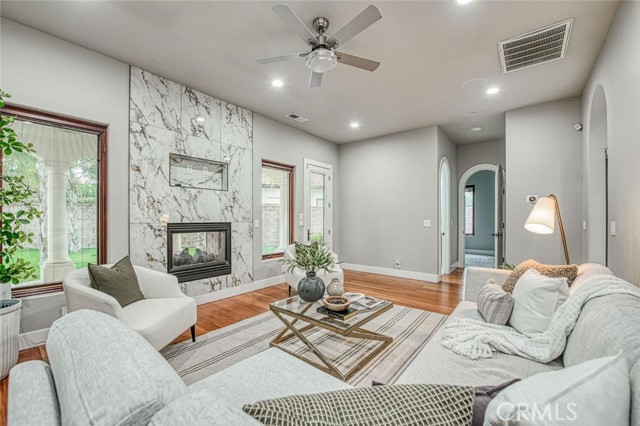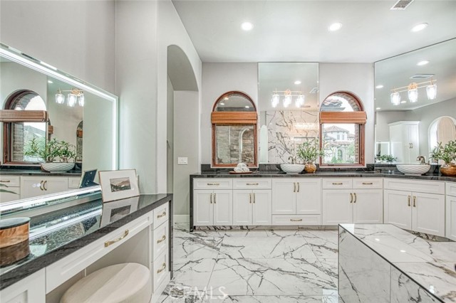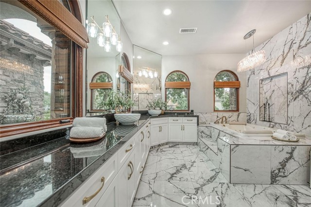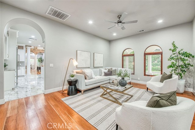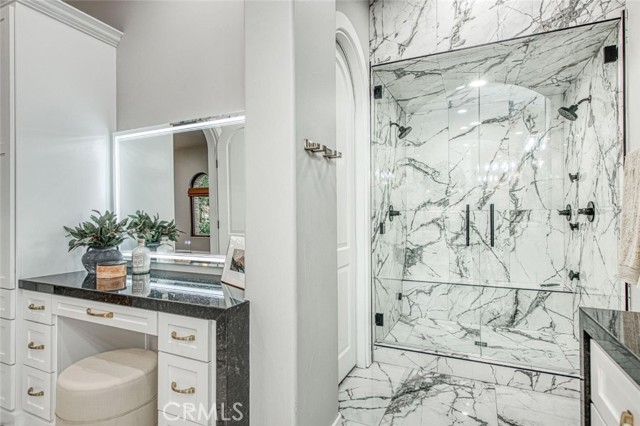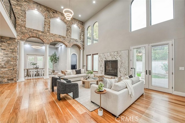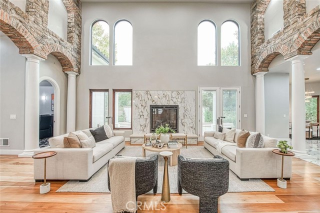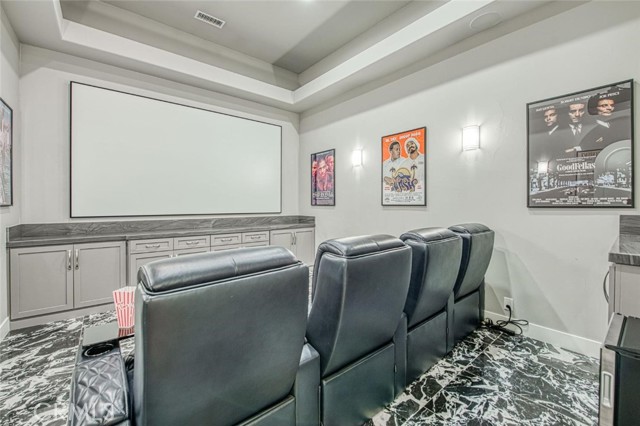 The main-level primary suite serves as a serene retreat, featuring a spa-like bathroom, inviting fireplace, and an expansive custom super closet. Entertainment shines with a cutting-edge, soundproof theater room, while a versatile bonus area off the kitchen easily adapts into a private guest suite or multigenerational space.
