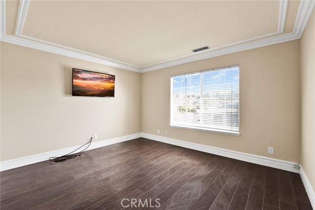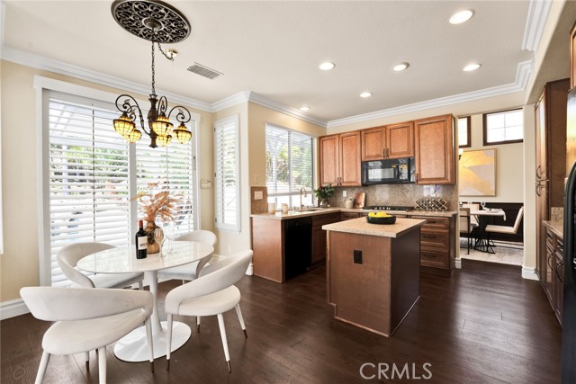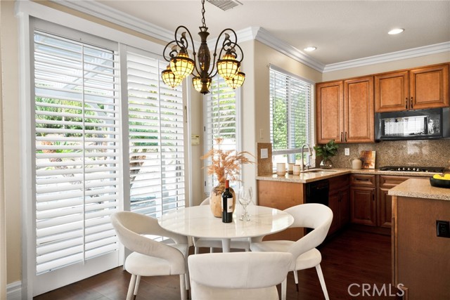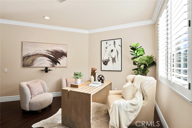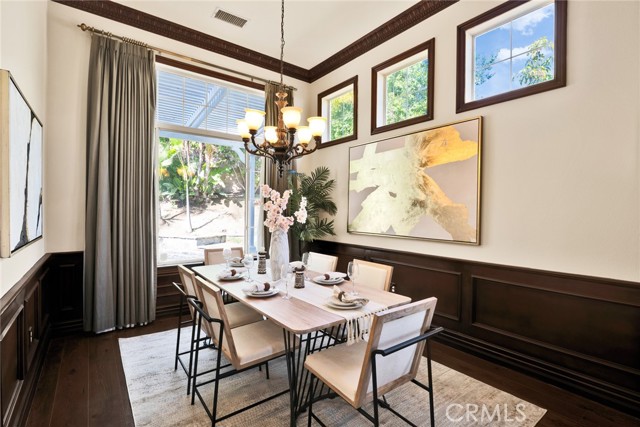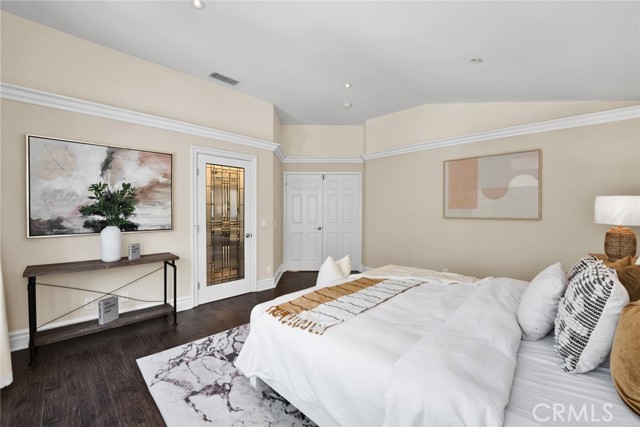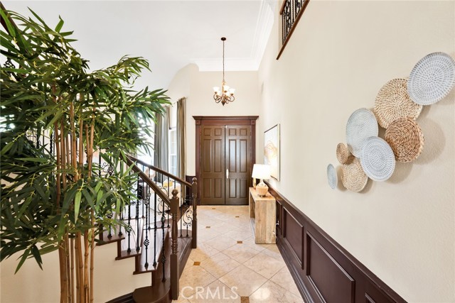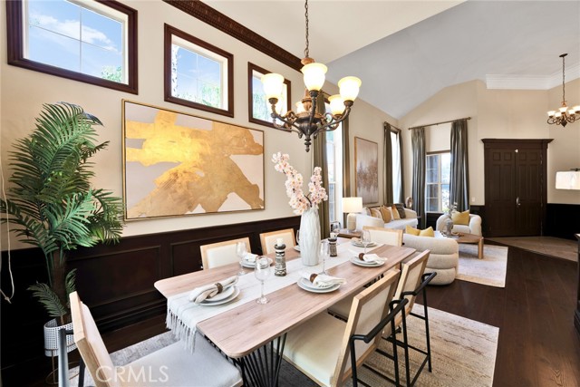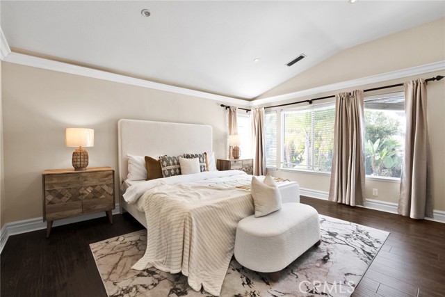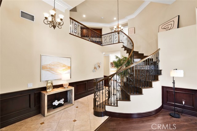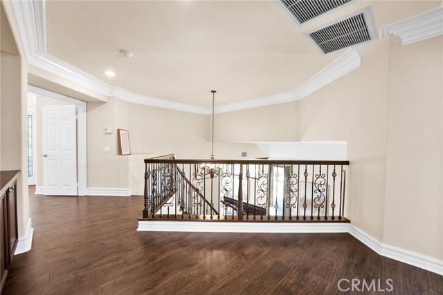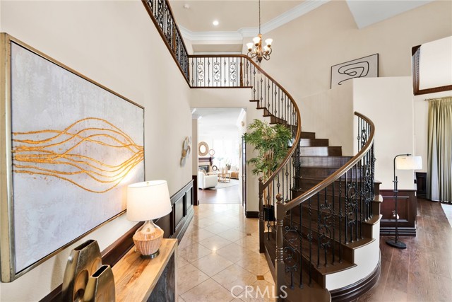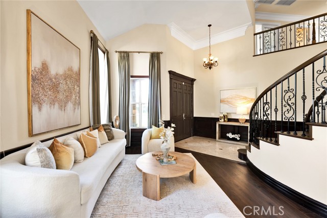 Step inside to soaring high vaulted ceilings, fresh interior paint, and elegant custom crown molding. Enjoy wood flooring throughout and a stylish rod iron staircase that enhances the open, airy design.