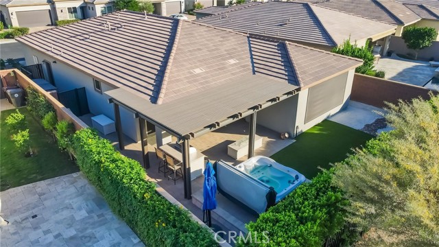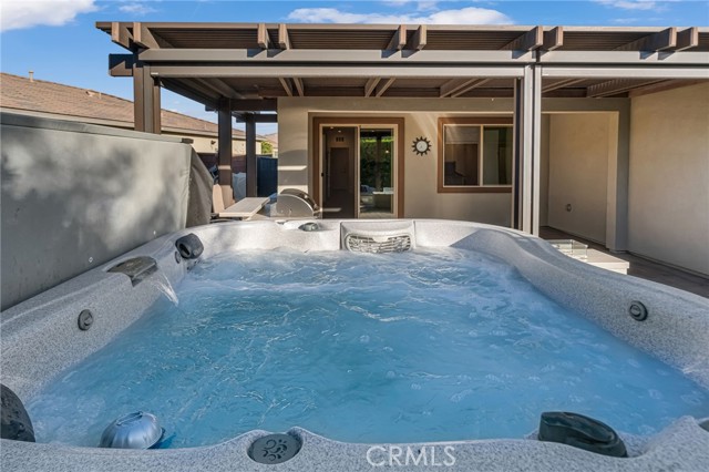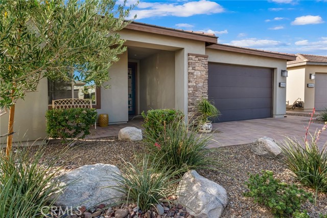 Welcome to this beautifully upgraded single-story home in Trilogy at The Polo Club. Offering 1,847 sq. ft., it features two private primary suites, each with its own large walk-in closet outfitted with built-in cabinetry, plus a third enclosed room ideal for guests or a home office, and a half bath. The café-style kitchen includes two convection ovens, a built-in microwave, quartz counters, upgraded cabinetry, stainless steel appliances, and a generous island. Tile flooring and 9’ ceilings enhance the open layout. A beautiful glass door opens to a landscaped backyard with a covered patio, automatic custom blinds for privacy and shade, and a Jacuzzi, creating a comfortable space for relaxing or entertaining. An air-conditioned garage and paver driveway add convenience and curb appeal. Optional membership provides access to resort-style amenities including pools, fitness center, pickleball, tennis, and June Hill’s Table. Set against the Santa Rosa Mountains, this home blends style, comfort, and an active lifestyle.