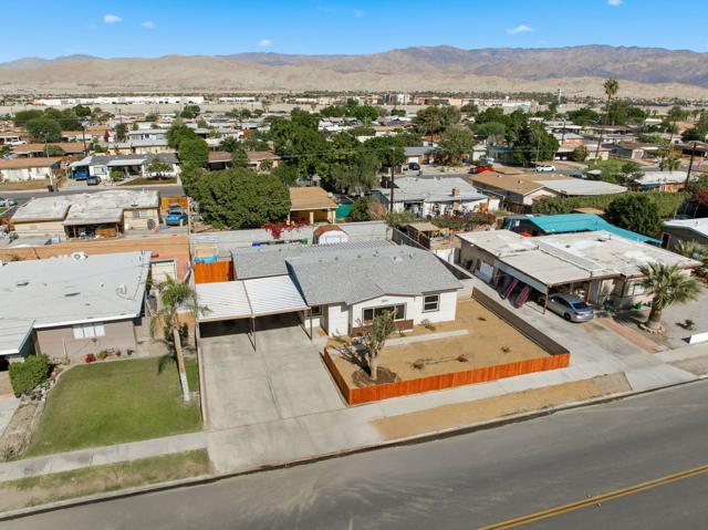 COMPLETELY REMODELED & MOVE-IN READY! This beautifully renovated 3-bedroom, 1-bath home in desirable North Indio offers a perfect blend of modern style, comfort, and everyday practicality. Fully updated from top to bottom by a licensed contractor with all necessary city permits and inspections, this home is truly turnkey--just bring your furniture and start living. Step inside to a bright and open living space featuring luxury vinyl plank flooring throughout, fresh interior and exterior paint, new baseboards, doors, and hardware. The open kitchen is the centerpiece, showcasing sleek Quartz countertops, brand-new cabinetry, a stylish black multipurpose sink, and a full suite of new stainless and black appliances, including gas stove, microwave hood, and dishwasher. A separate dining area provides room for family meals and entertaining, while recessed lighting and energy-efficient dual-pane windows bring warmth and light into every room. The bathroom has been completely remodeled, with a new vanity, shower tile, fixtures, and toilet. The entire home has been re-piped with PEX, includes a new water heater, and features new electrical switches, outlets, and light fixtures throughout. HVAC service has been professionally completed by Vic's Air Conditioning and includes a one-year parts and labor warranty for peace of mind. Outside, enjoy your own private fenced yard with new fencing and gates--all permitted and approved by the City of Indio--plus a rear storage shed for tools or personal items. The single attached garage features a new motorized door, and the extended driveway provides off-street parking for up to five vehicles, two of which are covered. The low-maintenance desert landscaping includes decomposed granite, new plants, and a manual drip irrigation system in front, with a mulched backyard ready for personal touches. Located in desirable neighborhood of North Indio with no HOA, this home is close to Andrew Jackson Elementary School, North Jackson Park, shopping centers, major retailers, restaurants, and convenient freeway access. A rare opportunity to own a fully renovated, move-in-ready home at an affordable price point--with all major systems updated and a modern design aesthetic throughout. Truly a must-see property offering comfort, quality, and lasting value in one of Indio's most desirable established neighborhoods!