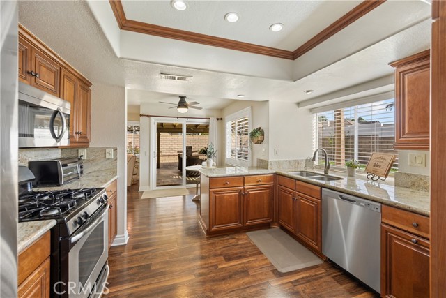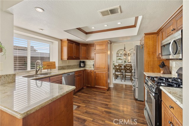 Welcome to your dream home in the heart of Alta Loma, where breathtaking mountain views and timeless design come together in perfect harmony. From the moment you arrive, you’ll feel the pride of ownership in every detail of this beautifully remodeled residence. Step inside to find natural light pouring in through large windows dressed with plantation shutters, complementing the gorgeous dark hard-surface flooring throughout the main level. The custom kitchen is a showstopper, featuring granite countertops, stainless steel appliances, rich cabinetry, and a breakfast nook ideal for morning coffee. A formal dining room offers the perfect setting for gatherings with family and friends. Downstairs, you’ll find a full bedroom and bathroom, perfect for guests or multi-generational living. Upstairs, the primary suite features high ceilings, plantation shutters, and a fully remodeled spa inspired bathroom with elegant finishes and a relaxing atmosphere. Every bathroom in the home has been tastefully updated for a modern, fresh feel. The backyard is your private retreat complete with an outdoor fireplace, patio for entertaining, and an above ground spa where you can unwind under the stars. With RV parking and a 3 car garage, there’s plenty of room for all your toys and hobbies. Located in the highly desirable Los Osos High School District, this home offers easy access to the 210 freeway, Pacific Electric Bike Trail, shopping, and dining. Don’t miss your chance to own this turnkey Alta Loma gem where comfort, style, and location come together to create the ultimate home of you've been waiting for.