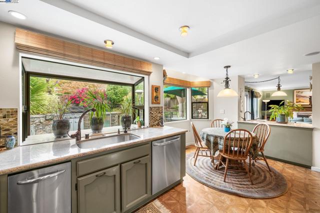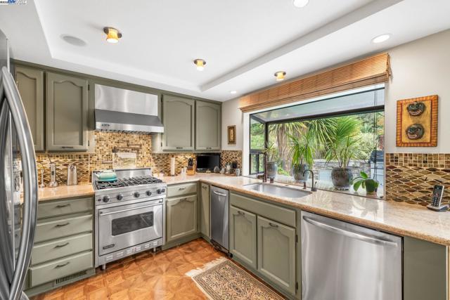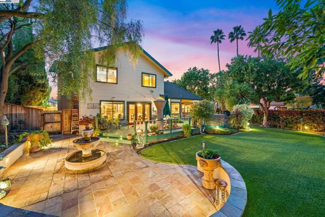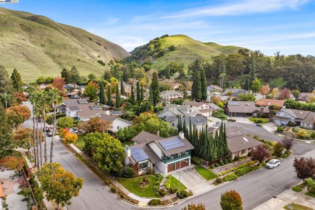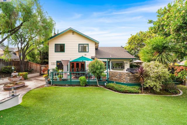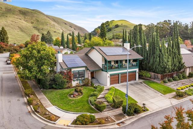 Beautiful Custom Home with Gorgeous Hill Views First time on the market! This stunning 4-bedroom, 3-bath custom home offers designer touches throughout and sweeping hillside views. The open floor plan features hardwood floors, cathedral ceilings, and a main-level bedroom and full bath currently used as an office. The updated designer kitchen boasts stainless steel appliances, Viking gas stove, granite counters, pot filler, garden window, and pantry with pull-out shelving. The family room includes built-in bookshelves, a wet bar with wine fridge, and stone fireplace with French doors leading to the backyard. Upstairs, the spacious primary suite features high ceilings, private deck, and a luxurious marble bath with Jacuzzi tub, heated floors, and separate shower. The backyard is an entertainer’s dream with an outdoor kitchen, waterfall feature, artificial turf, and lush landscaping. Owned solar system keeps utility costs low year-round. Truly a one-of-a-kind home with style, comfort, and views!