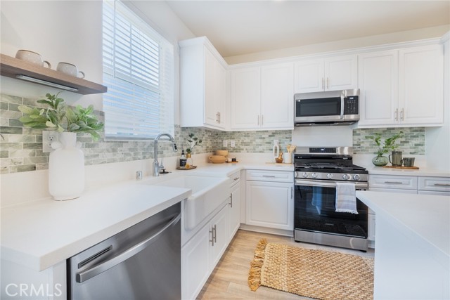 Welcome to your modern oasis in the highly desirable Sunset at Melrose community! This beautifully upgraded 3-bedroom, 2.5-bath townhome also features a versatile bonus office which provides the ability to work from home, for creative projects, or a quiet retreat. The open-concept floorplan is filled with natural light and showcases luxury quartz countertops, a newly installed designer backsplash, and sleek laminate flooring. The kitchen flows seamlessly into the spacious living area, which opens up to an expansive balcony which is ideal for morning coffee, evening sunsets, or entertaining guests.