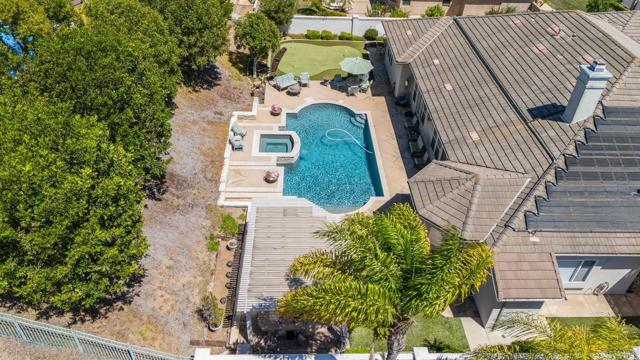 Luxury Single-Story Retreat in Escondido Rare opportunity to own a true masterpiece in the heart of Escondido. This expansive single-story estate offers 4 bedrooms, 4 bathrooms, and over 4,280 sq. ft. of living space on a private half-acre lot. With soaring ceilings, spacious living and family rooms, and custom high-end finishes, this home is designed to impress. The chef’s kitchen features over $150,000 in custom cabinetry and top-of-the-line appliances, perfect for both everyday living and entertaining. Oversized closets, a large 3-car garage with EV charging, and thoughtfully designed interiors provide unmatched convenience and style. Enjoy sustainable living with 38 fully paid-off solar panels, eliminating electricity bills, along with solar heating for the pool for year-round enjoyment. Step outside to your own resort-style backyard showcasing a serenity pool with pebble-tech finish, raised hot tub, built-in BBQ, putting green, and custom stained concrete patio—ideal for relaxation and entertaining. A private roundabout driveway enhances curb appeal while offering easy access and ample parking. This Escondido estate seamlessly blends luxury, sustainability, and comfort—an extraordinary opportunity to own one of the area’s finest homes
